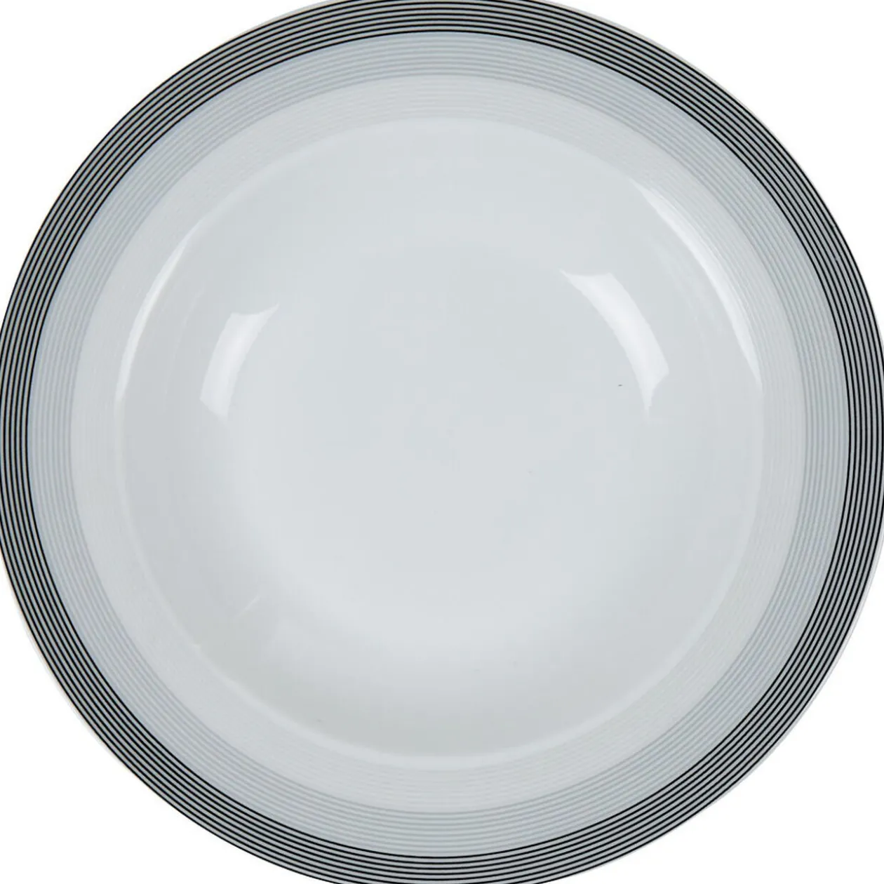 Assiette creuse ronde blanche et grise Sérénité Rayures, dim. Ø22xh.3 cm, porcelaine.