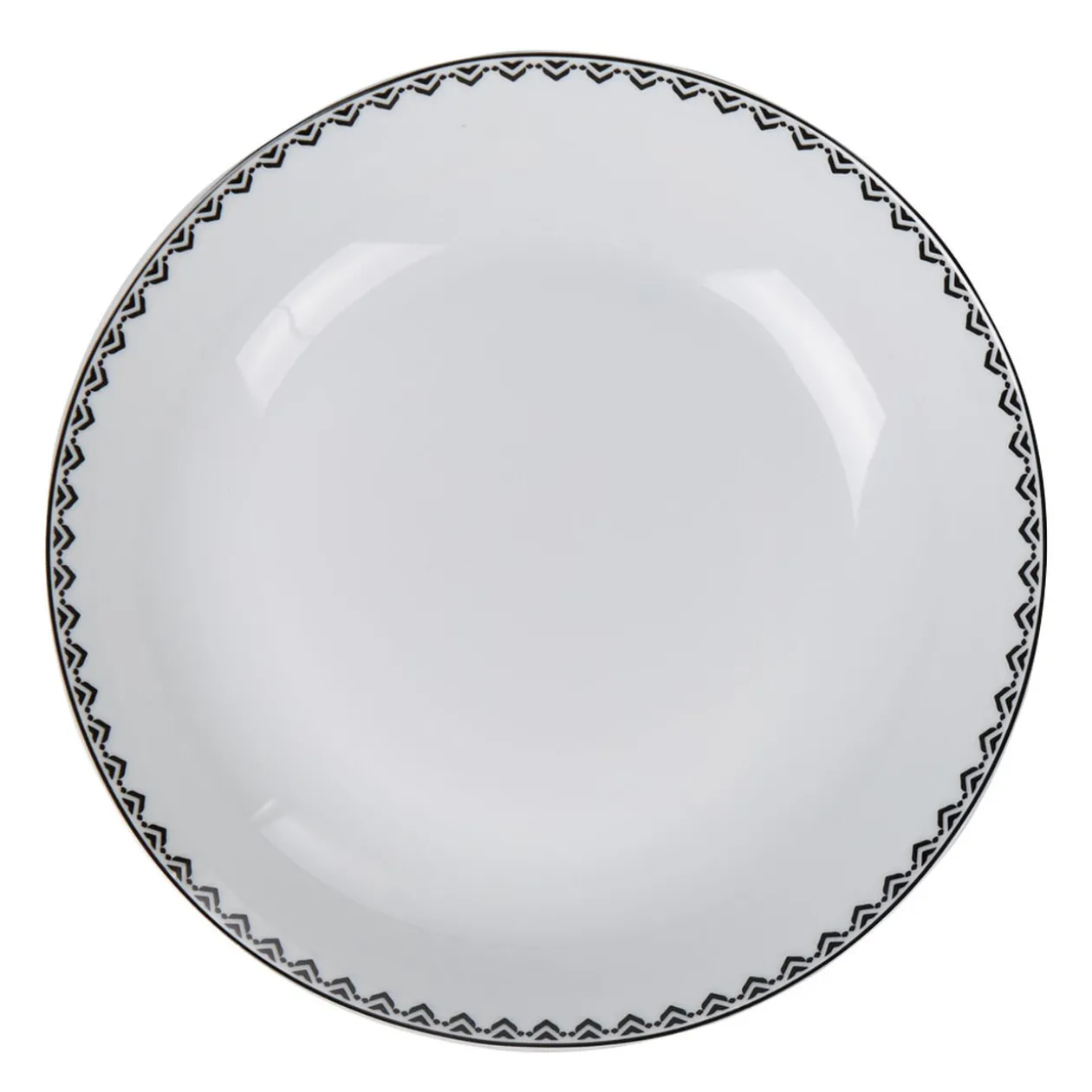 Dégustez une délicieuse soupe, une salade ou un bon plat mijoté dans cette assiette blanche à la bordure aux motifs berbères noirs.