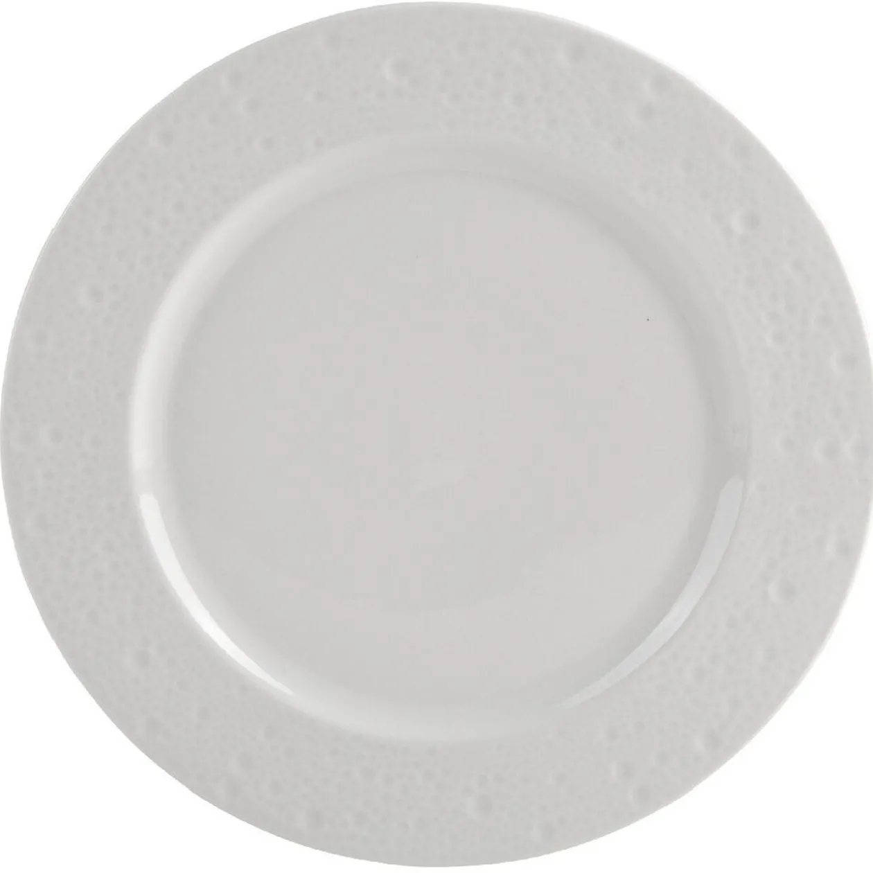 4 assiettes plates blanches, effet martelé.