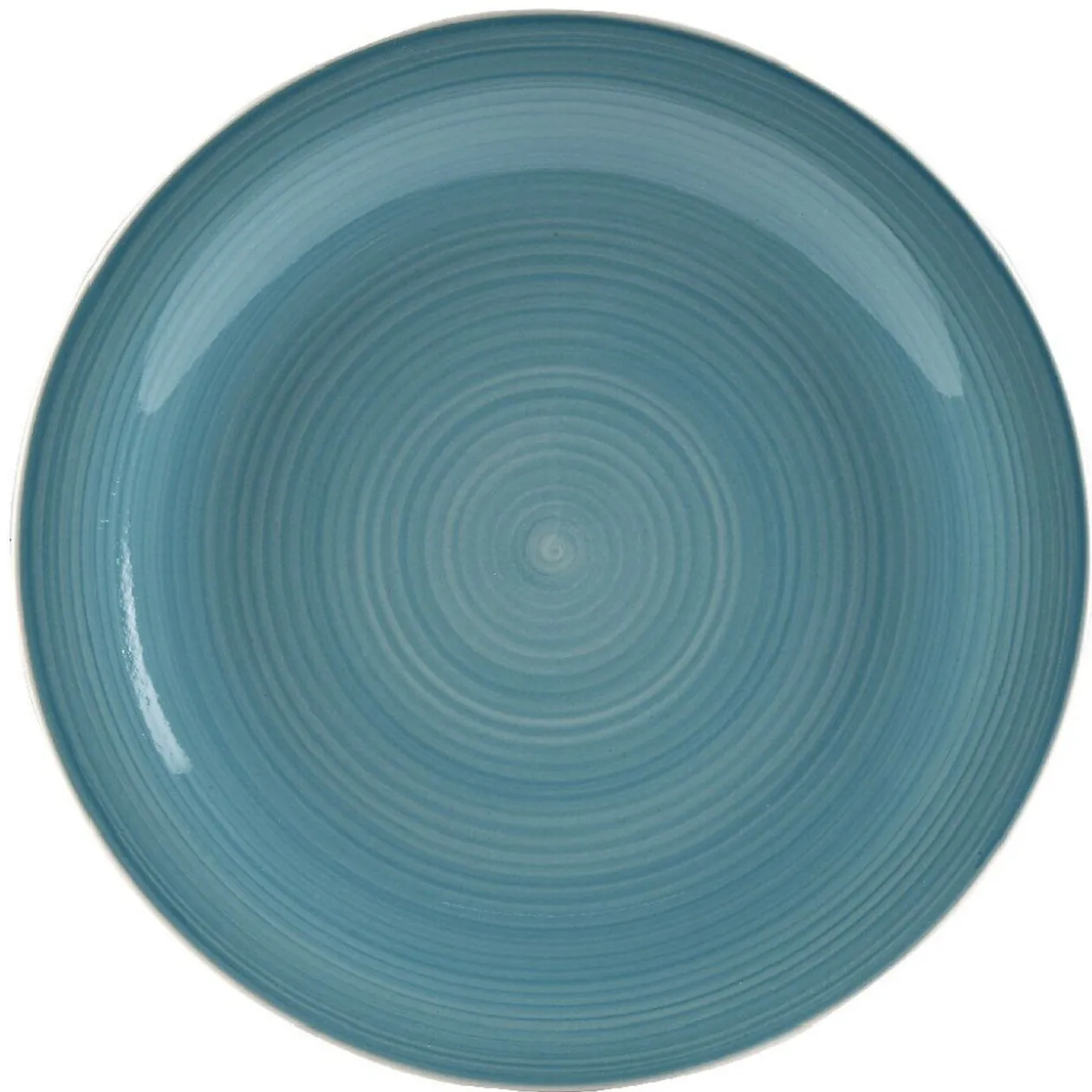 4 assiettes plates de couleur bleu effet spirales.