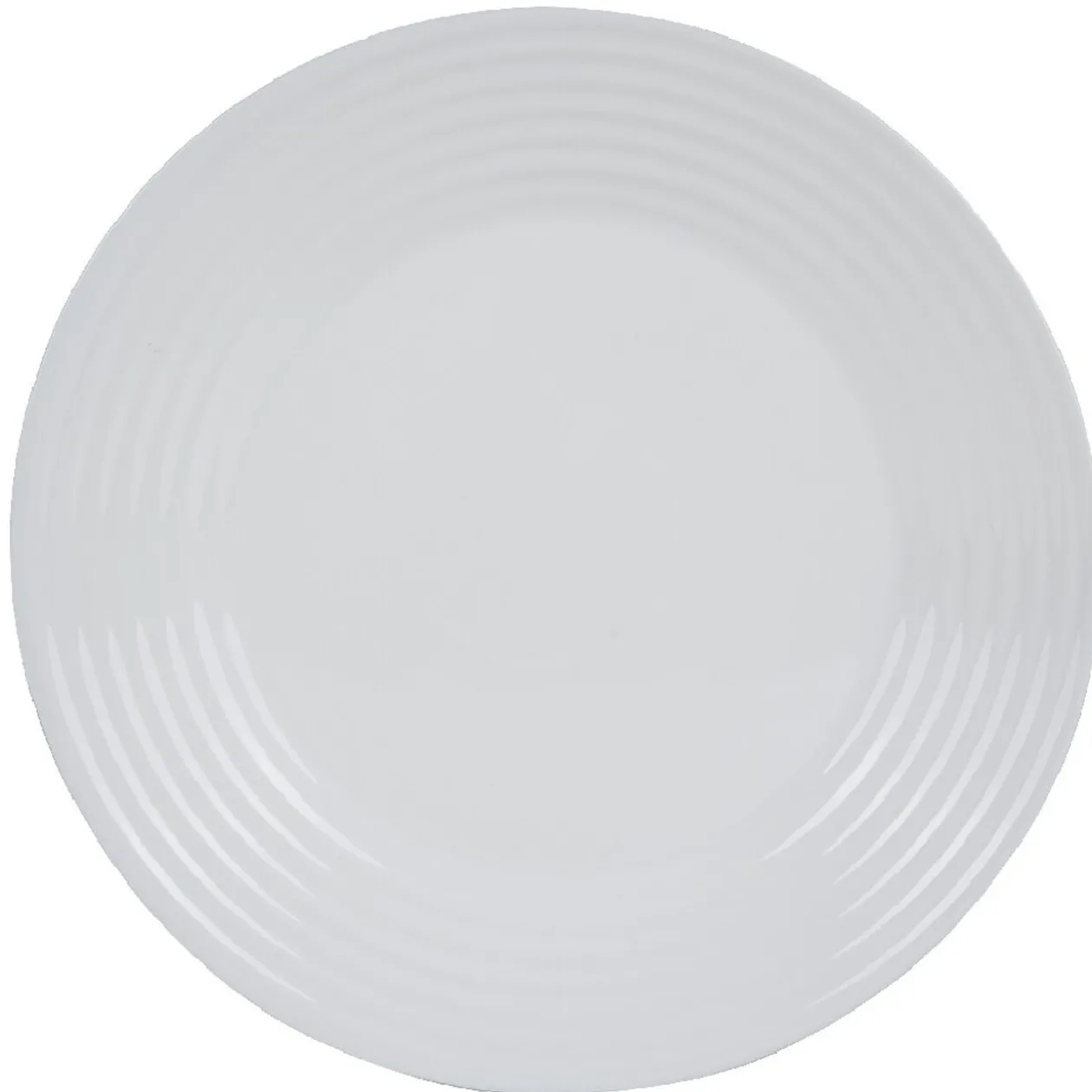 Lot de 12 assiettes plates de la collection Harena de Luminarc, on aime son verre opale au design original blanc immaculé et résistant.