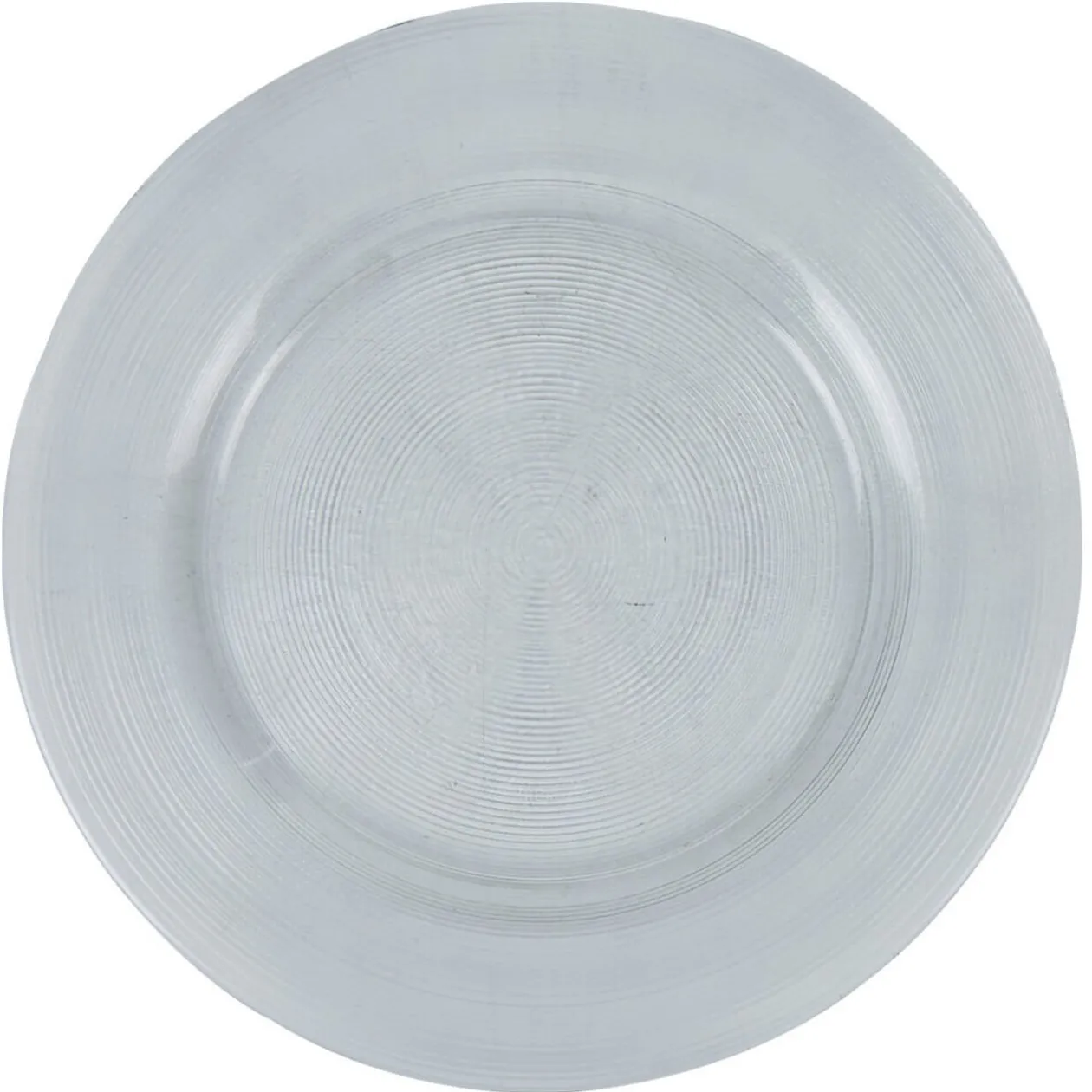 Assiette plate transparente ronde striée, dim. Ø27xh.2 cm, verre.