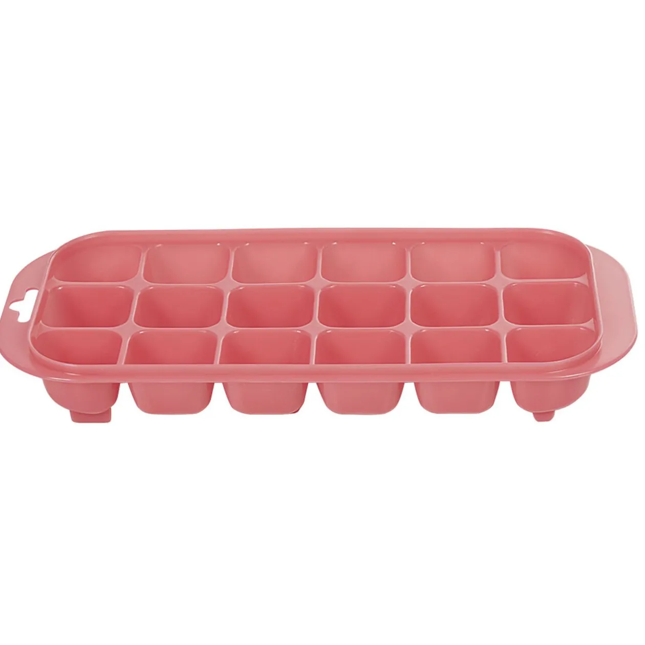 Facile à remplir, fabriquez jusqu’à 36 glaçons avec ce set de 2 bacs en plastique rose.