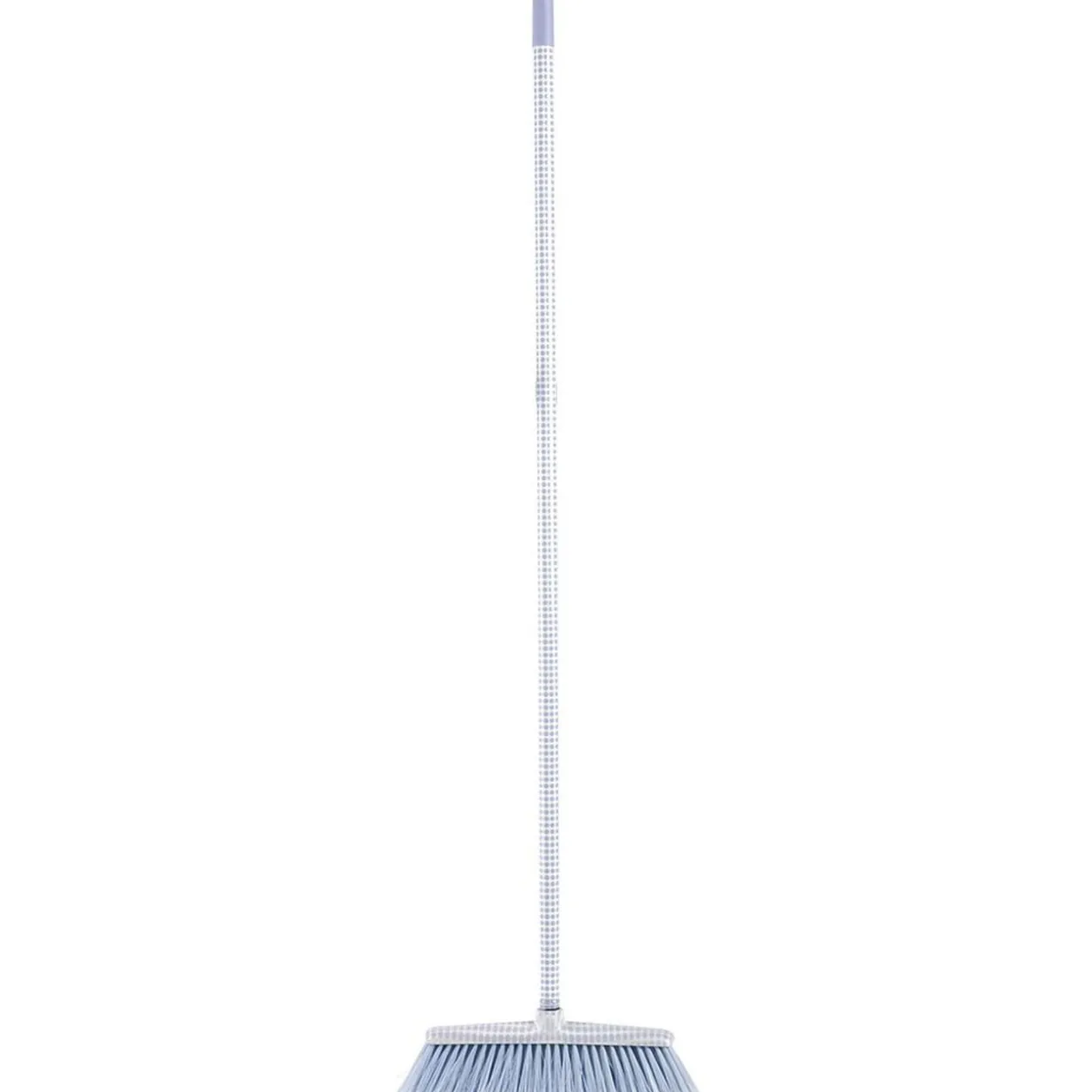 Balai assorti à son manche imprimé de ronds blancs.