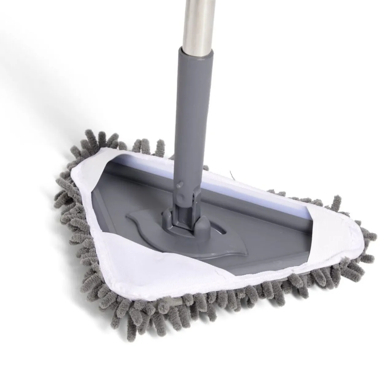 Sa forme triangulaire permet d’atteindre facilement les coins, tandis que ses dimensions compactes le rendent facile à ranger.