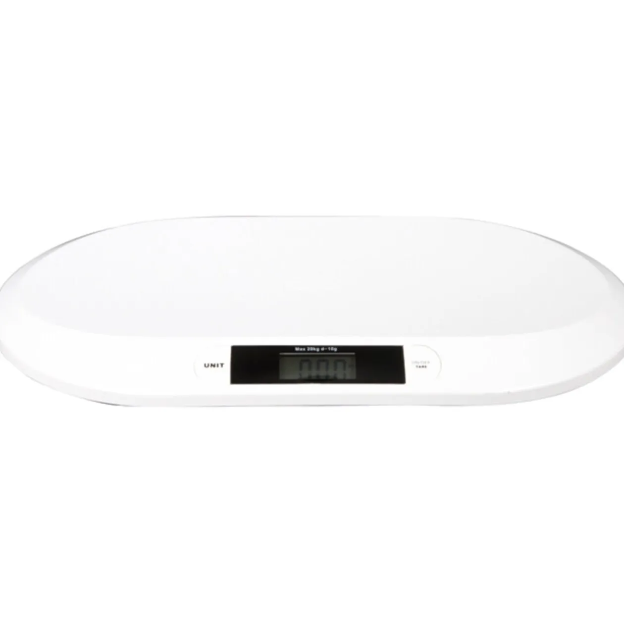 Balance pour bébé, poids max : 20 kg, précision 10 gr, fonction tare, fonctionne avec 2 piles LR3 non fournies..