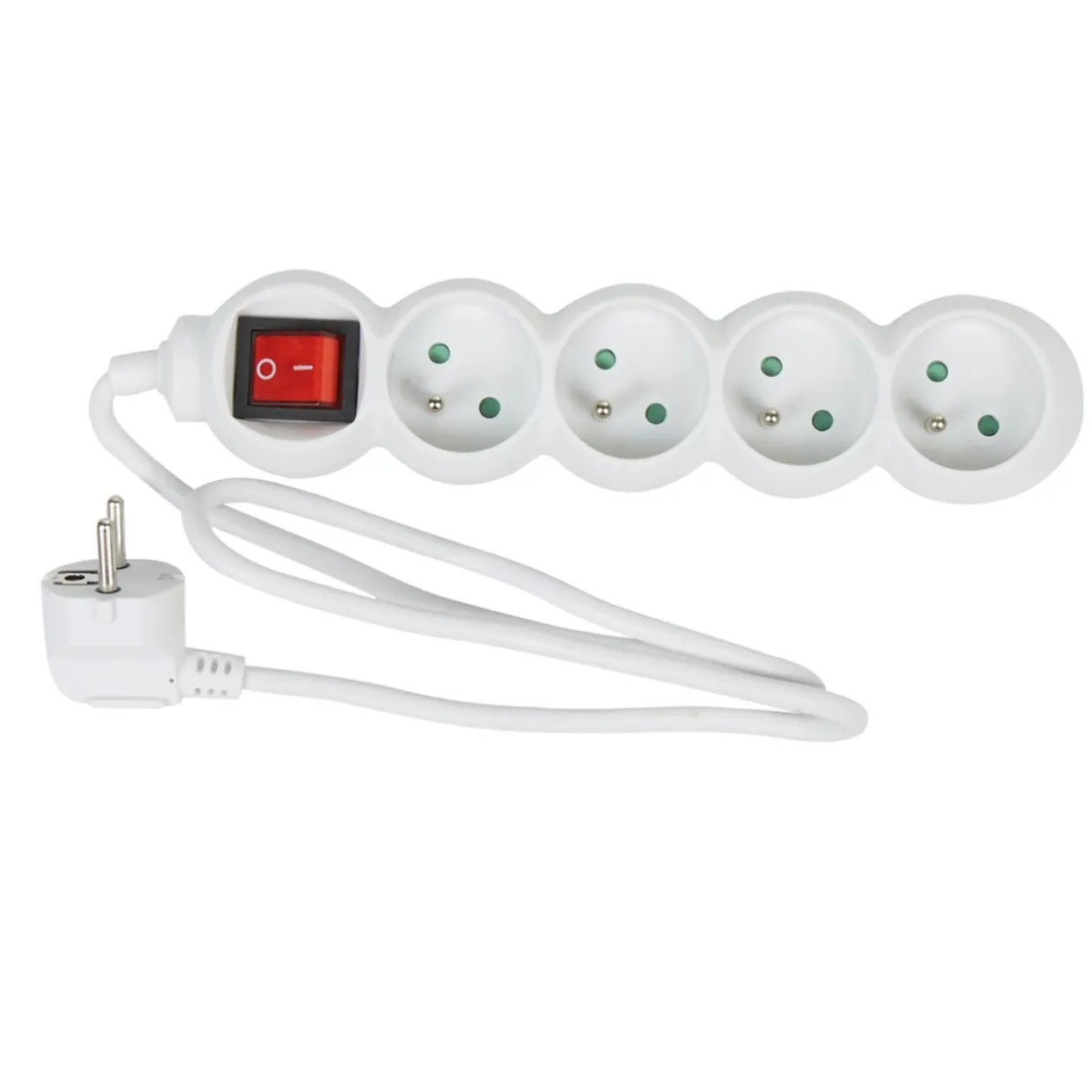 Bloc multiprise 4 prises 4x16A et switch, dim. 36,5x5x4 cm, plastique.