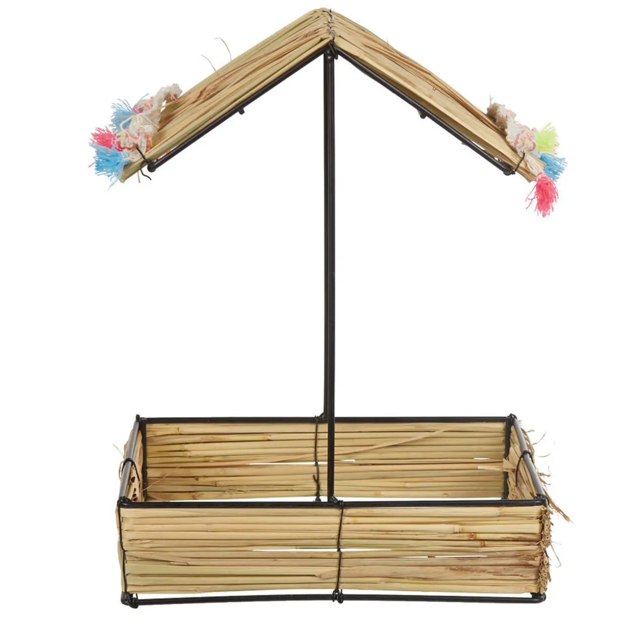 Recevez vos invités dans une ambiance tropicale avec ce support en paille et ses 4 gobelets en verre !
