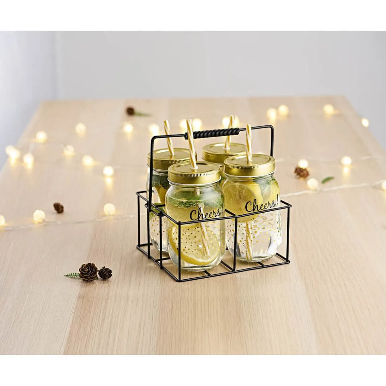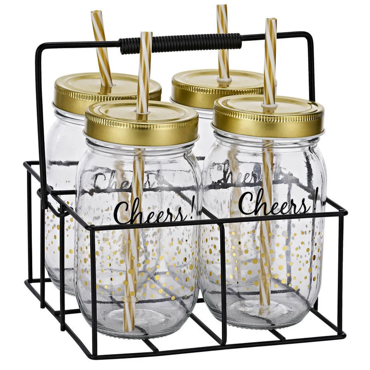 Apportez un côté convivial à vos réceptions en servant vos boissons dans ces jolis bocaux en verre transparent. Ils sont dotés d’un couvercle doré et d’une paille assortie pour siroter avec plaisir du jus ou du sirop. Les bocaux sont livrés avec un support en métal de couleur noire, esthétique et pratique.