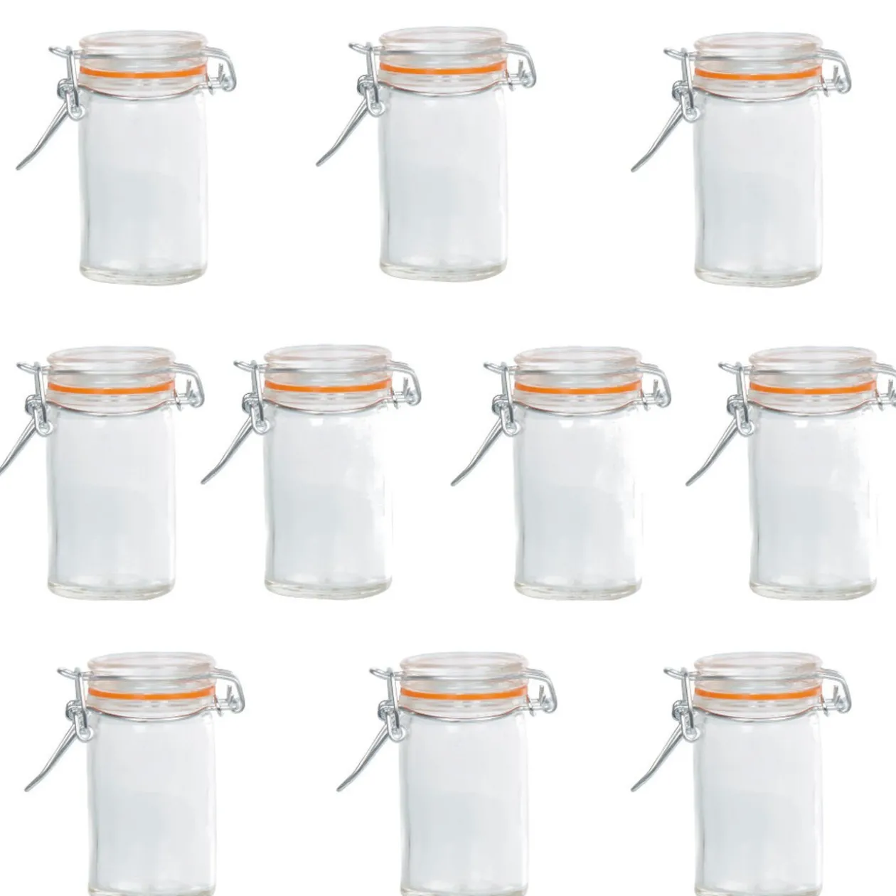 Faites-vous plaisir et conservez vos réalisations culinaires. Parfait pour garder confitures, sauces, olives, tomates séchées ou épices, pensez également à offrir vos préparations à vos proches. Ces 10 petits bocaux seront géniaux pour la cuisine et pour la déco. Remplissez les de sable, de coquillage ou de billes doré pour Noël.