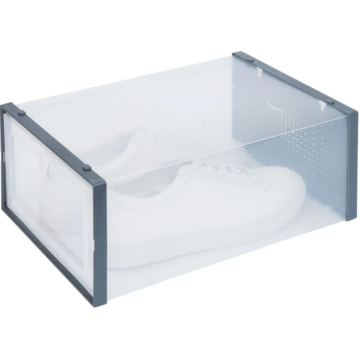 Lot de 2 boîtes à chaussures empilables en plastique transparent.