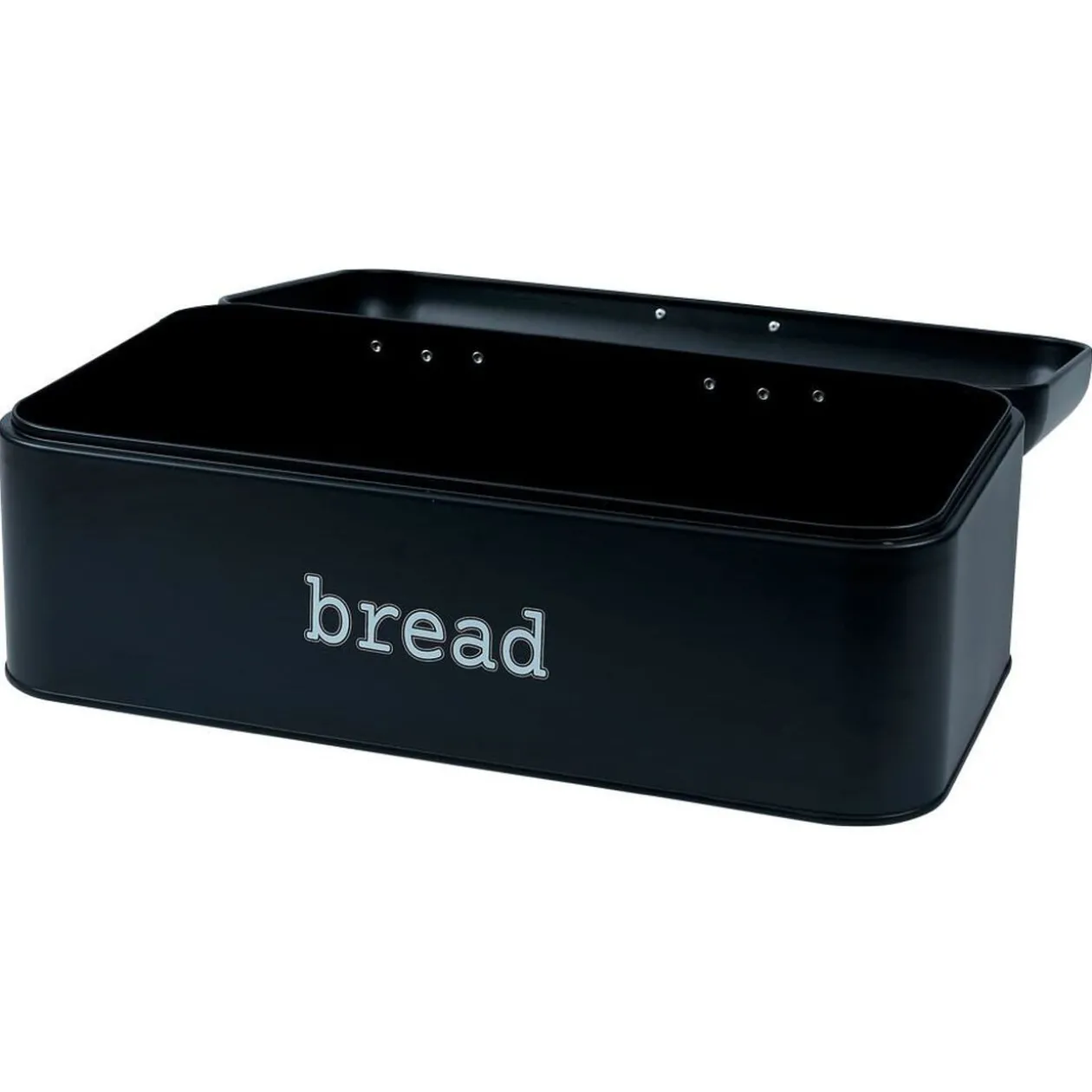 Le revêtement en métal noir confère à la boîte une apparence sobre et sophistiquée, tandis que l’inscription « bread » ajoute une touche de style minimaliste.