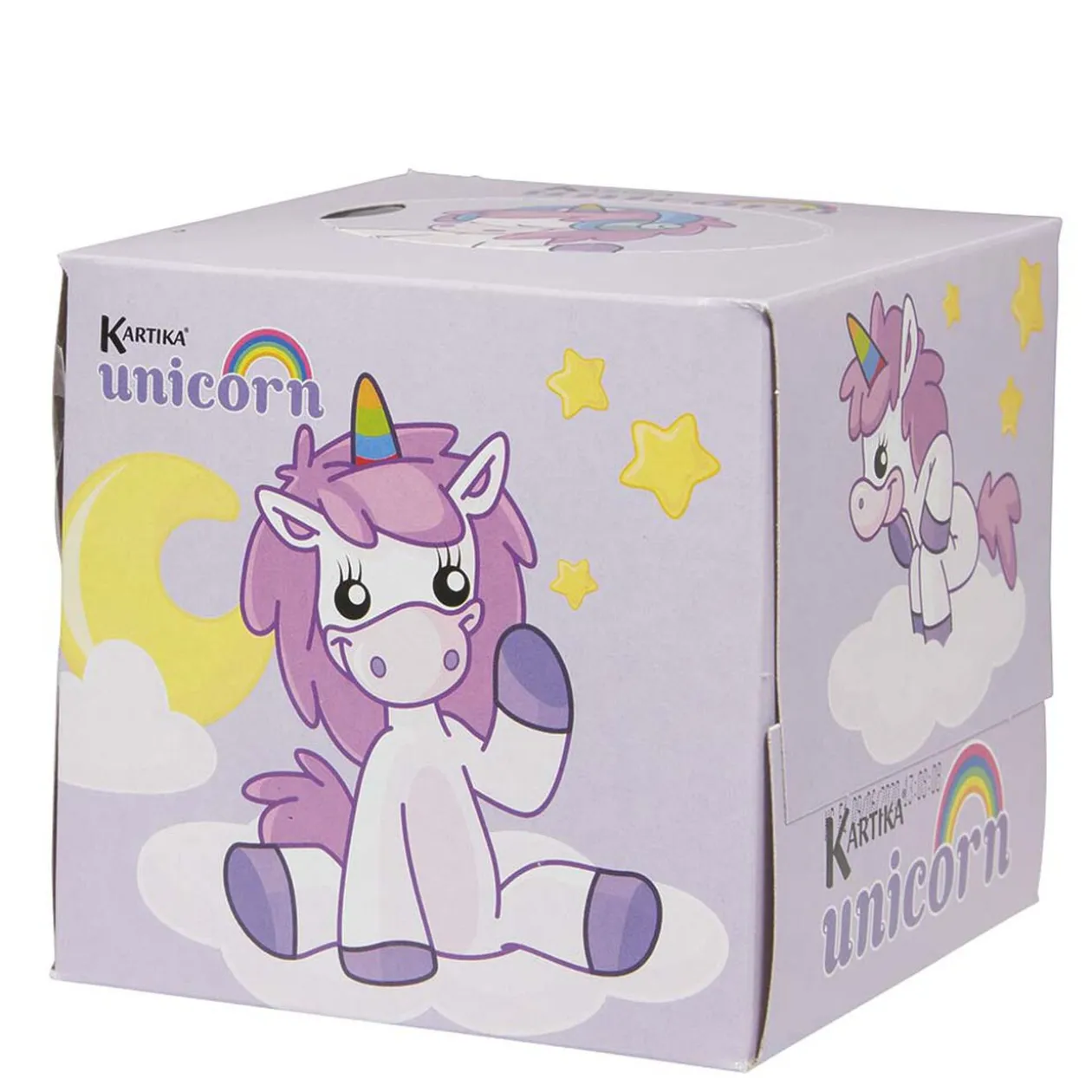 Boîte décorée sur le thème des licornes d’une contenance de 56 mouchoirs.