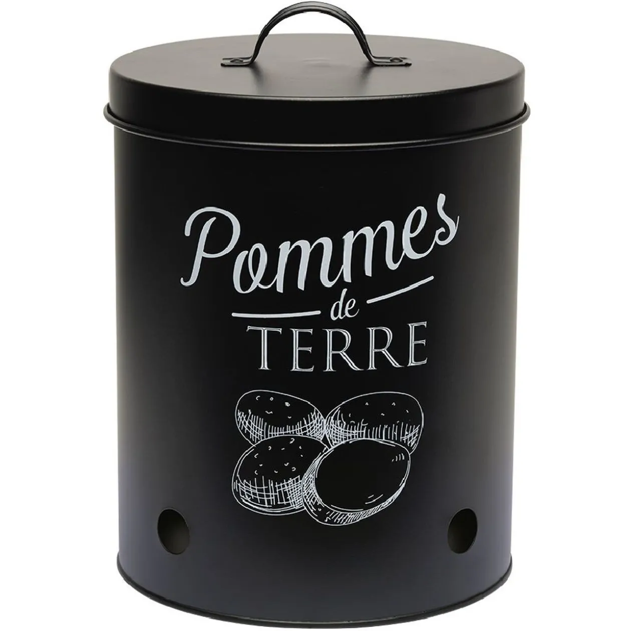 Optez pour cette boîte de conservation noire en métal pour conserver vos pommes de terre et préserver leurs saveurs.