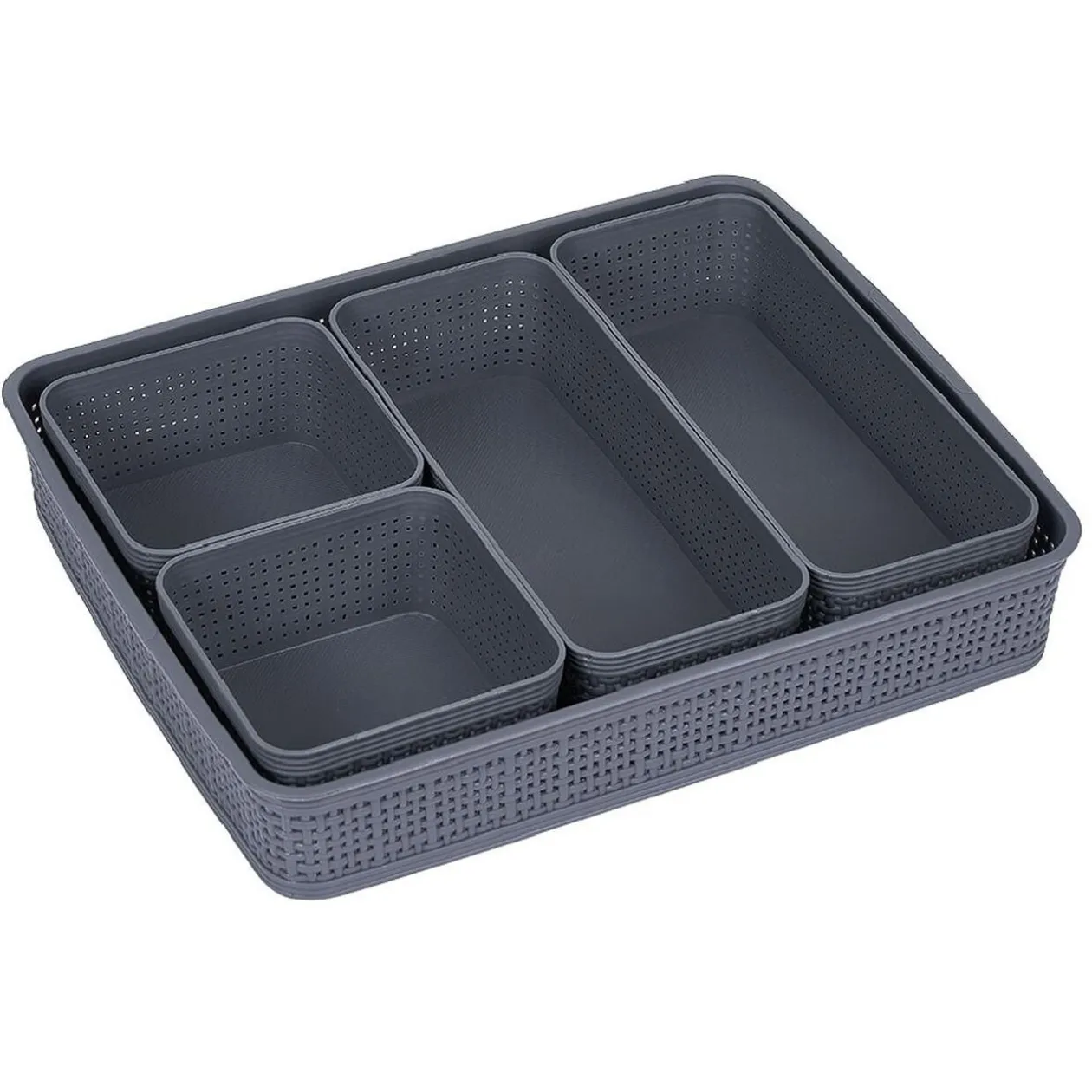 Ordonner et trier sont les maîtres mots de cette boîte organisateur à 5 compartiments en plastique gris. Pratique, elle vous offre de nombreuses possibilités de rangement. Son design sobre et stylé à la fois s’intègrera aisément à la décoration de votre intérieur.