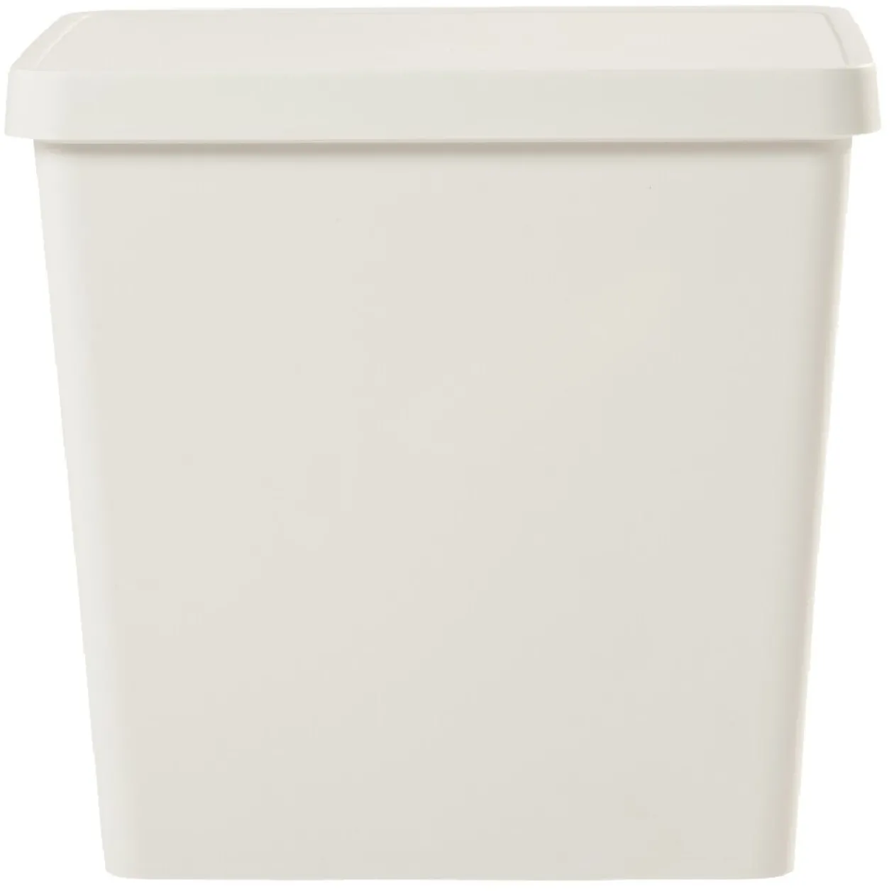 Optimisez votre rangement avec cette boîte en plastique beige munie d’un couvercle.