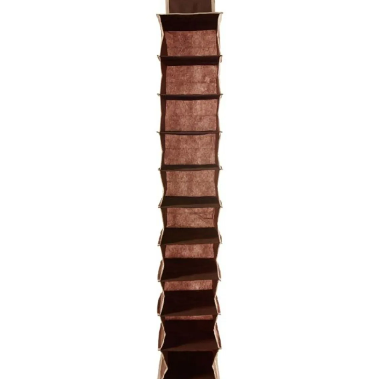 Boîte de rangement à chaussures en carton de couleur bleu et de 97x17x28 cm de dimensions.
