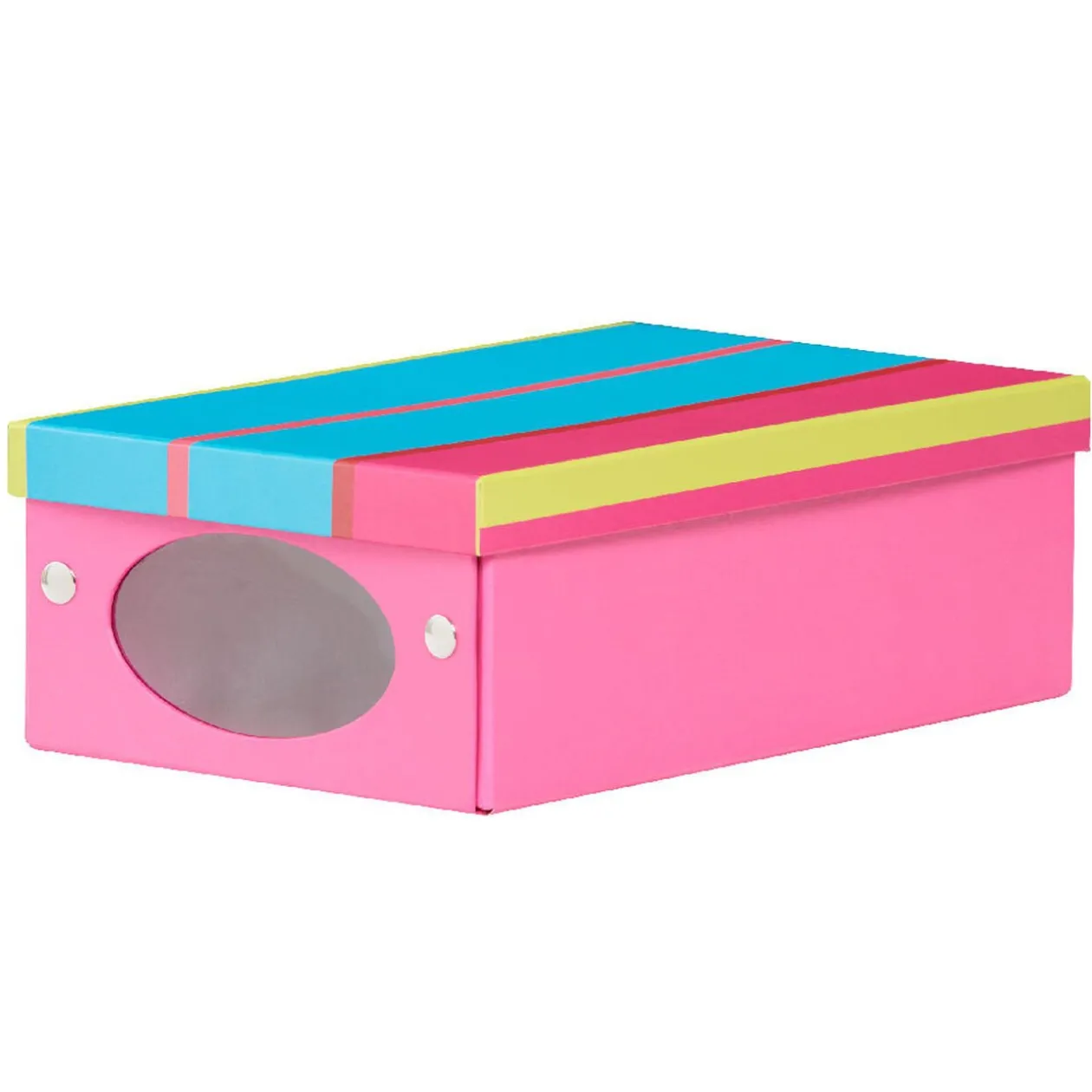 Boîte de rangement multicolore en carton, dim. 34x21x11 cm, carton et fenêtre PVC.