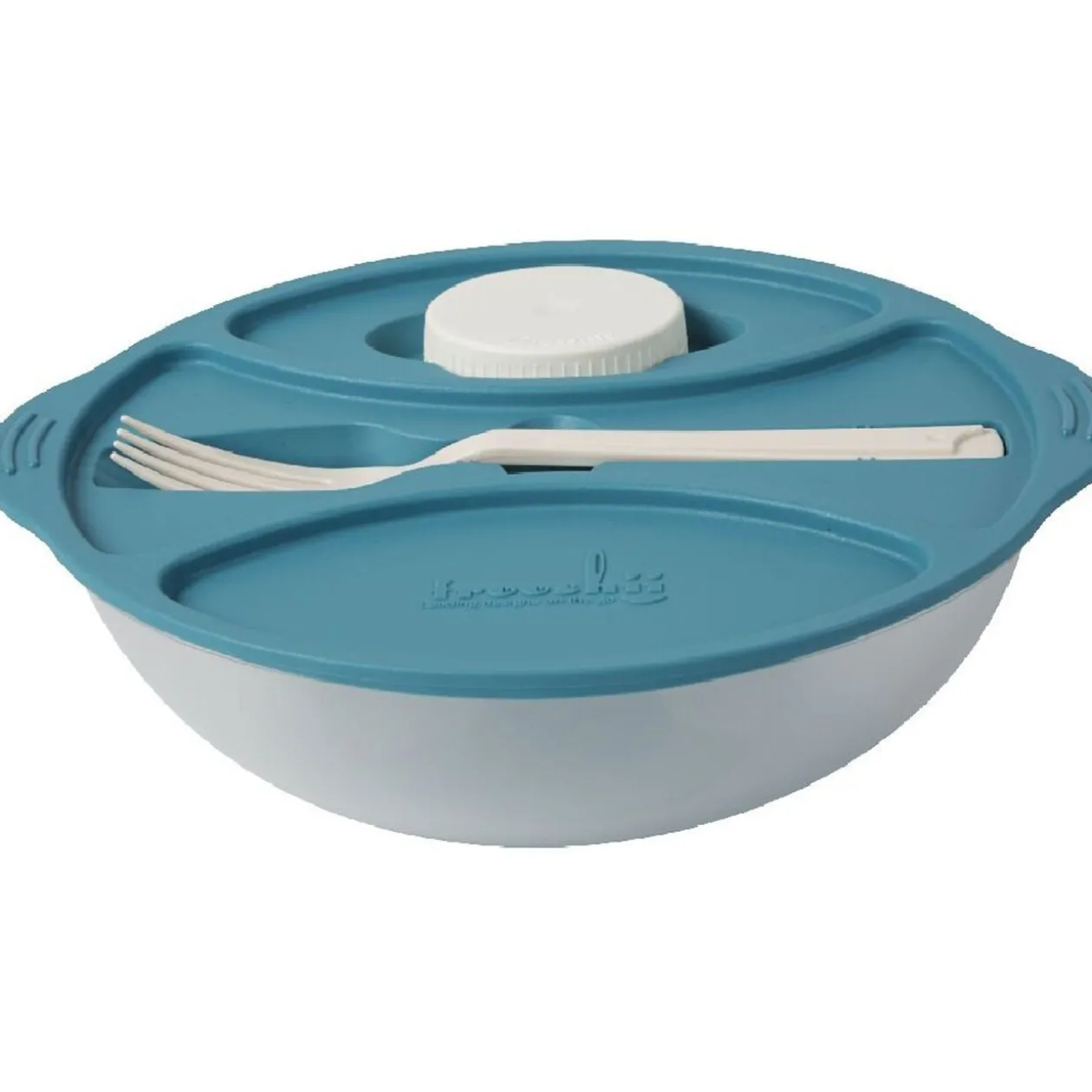 Lunch box avec couvercle bleu ou vert, ø 23 cm, plastique. Fourchette et pot plastique inclus. Diff. coloris, disponibilité selon arrivage. Boîte alimentaire idéale pour pique nique ou pose déjeuner.
