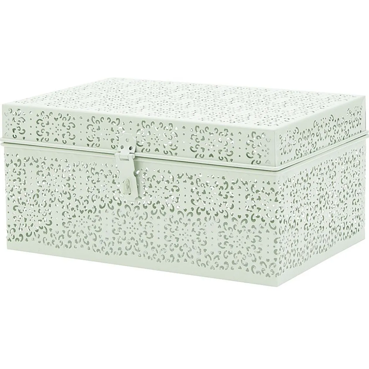 Cette mini malle en métal à motif ajouré effet dentelle sera parfaite pour mettre à l’abri vos bijoux et autres précieux accessoires.