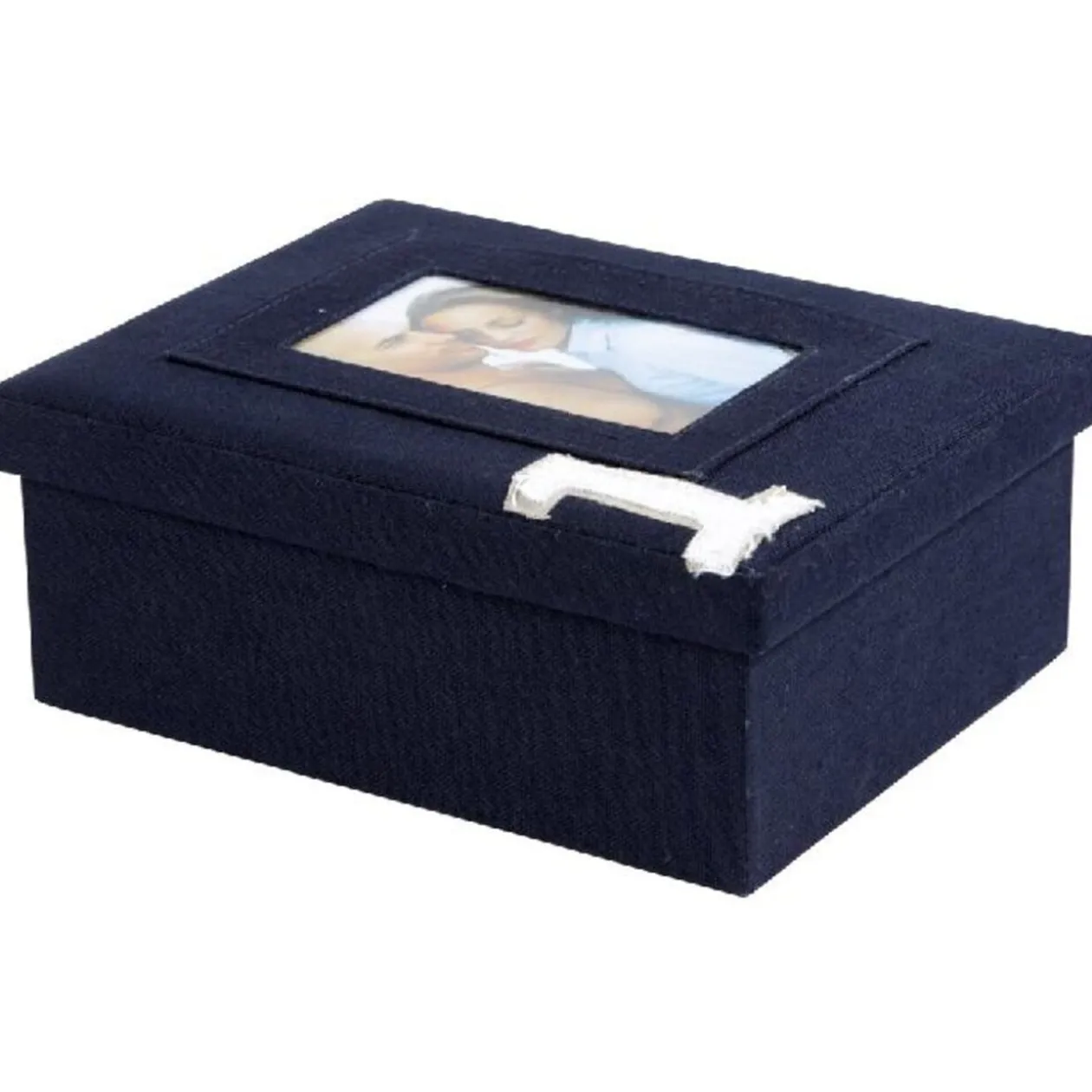 Boîte « porte photo », dim. 23×18,5×9 cm, bois et tissu, pour photo dim. 10×15 cm.