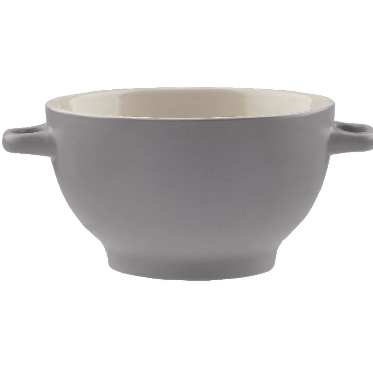Bol à soupe gris avec couvercle et poignées sur le côté. Idéal pour boire et garder au chaud votre potage ou velouté !
