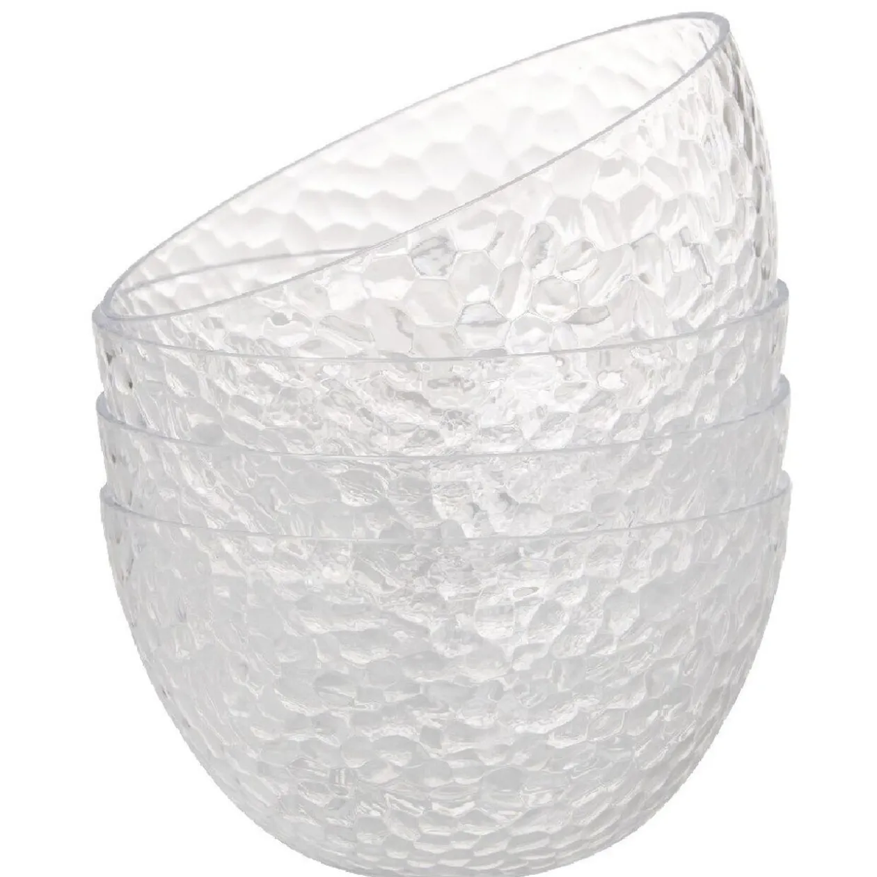 4 bols transparents en plastique martelé, dim. Ø14xh.8,5 cm.