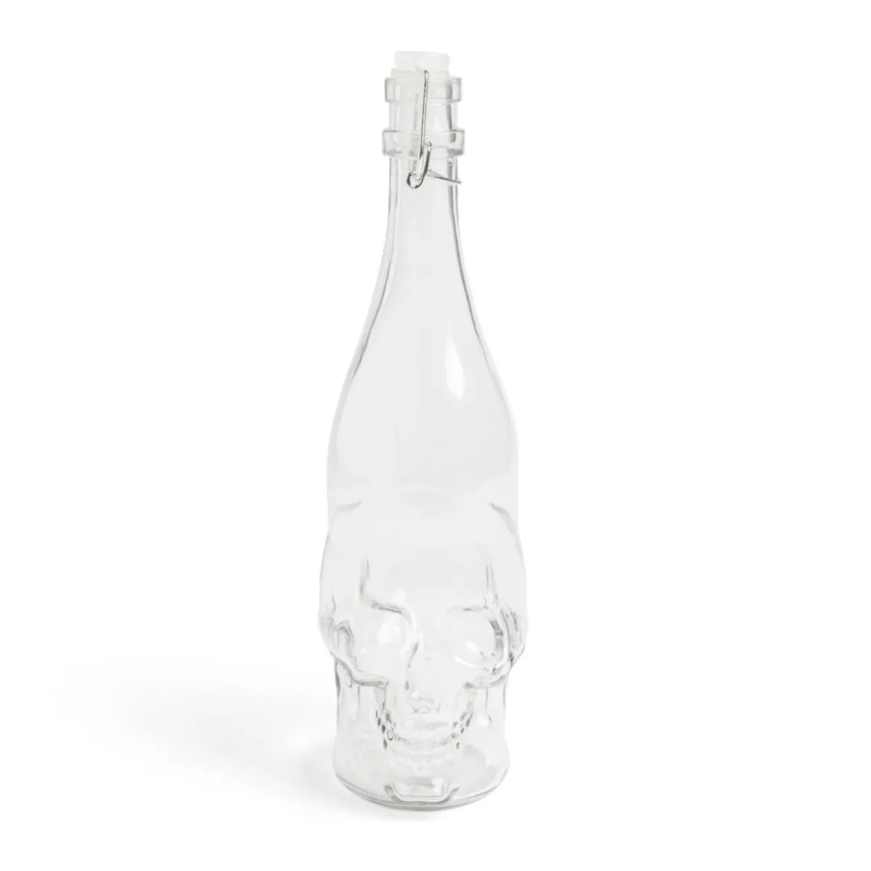 Ajoutez une touche tendance à votre décoration de table à l’occasion d’Halloween avec cette bouteille en verre transparent en forme de tête de mort.