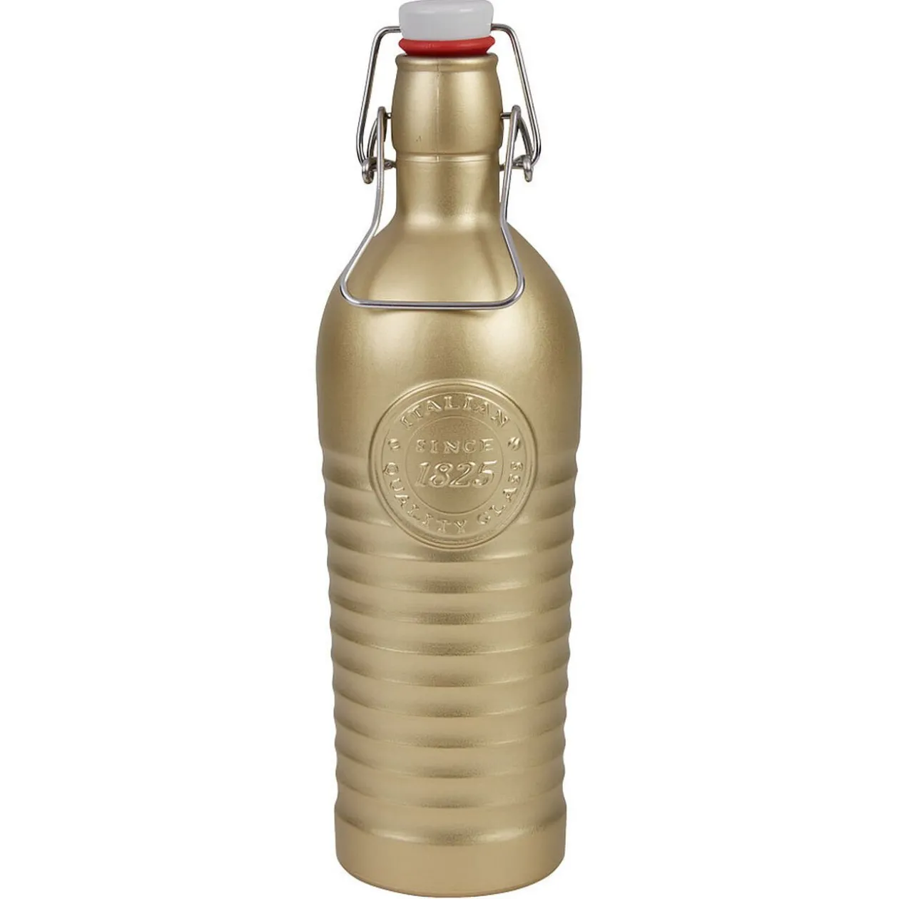 Bouteille en verre doré Bormioli design Officina avec bouchon blanc clipsable, idéal pour servir avec élégance vos jus, liqueurs et autres boissons de votre choix!
