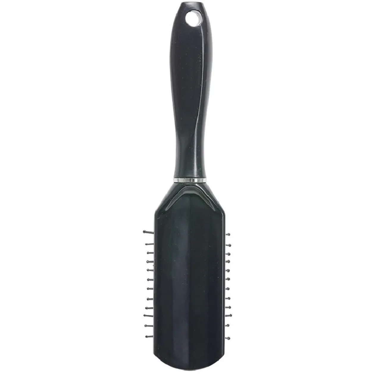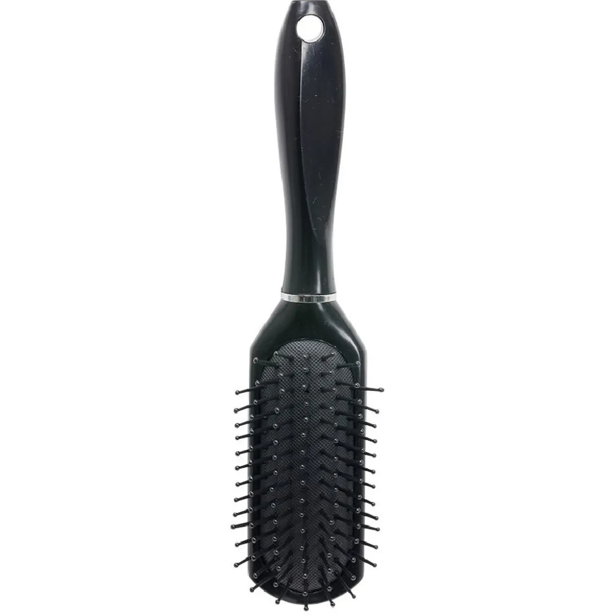 Brosse pneumatique avec picots en pvc noir perlés. Pour cheveux mi-longs à longs, idéale pour masser délicatement le cuir chevelu lors du démêlage et du coiffage.