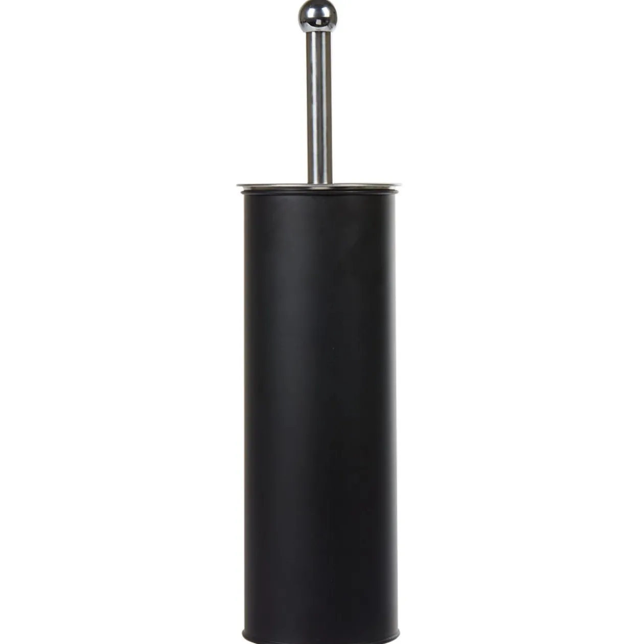 Brosse pour WC avec socle cylindrique en métal uni noir.