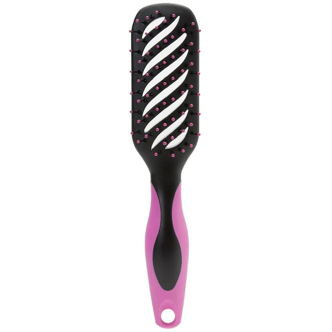 Brosse tunnel multi-usages avec picots en nylon perlés rose et fuchsia pour le démêlage et lissage de tous types de cheveux.