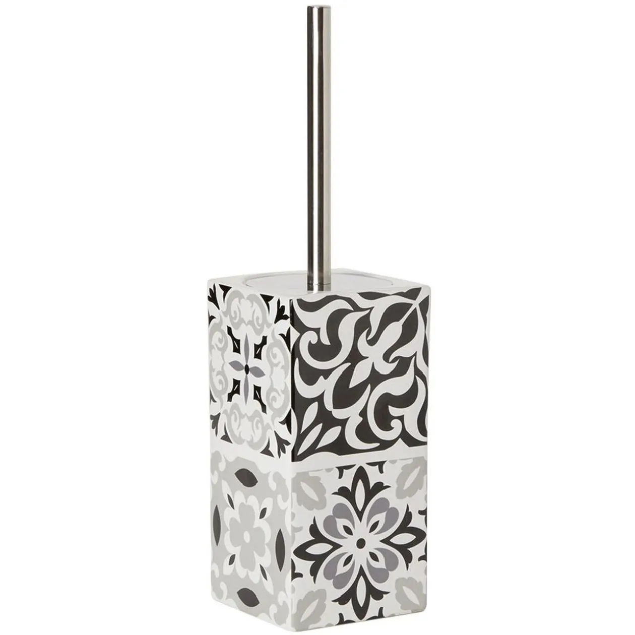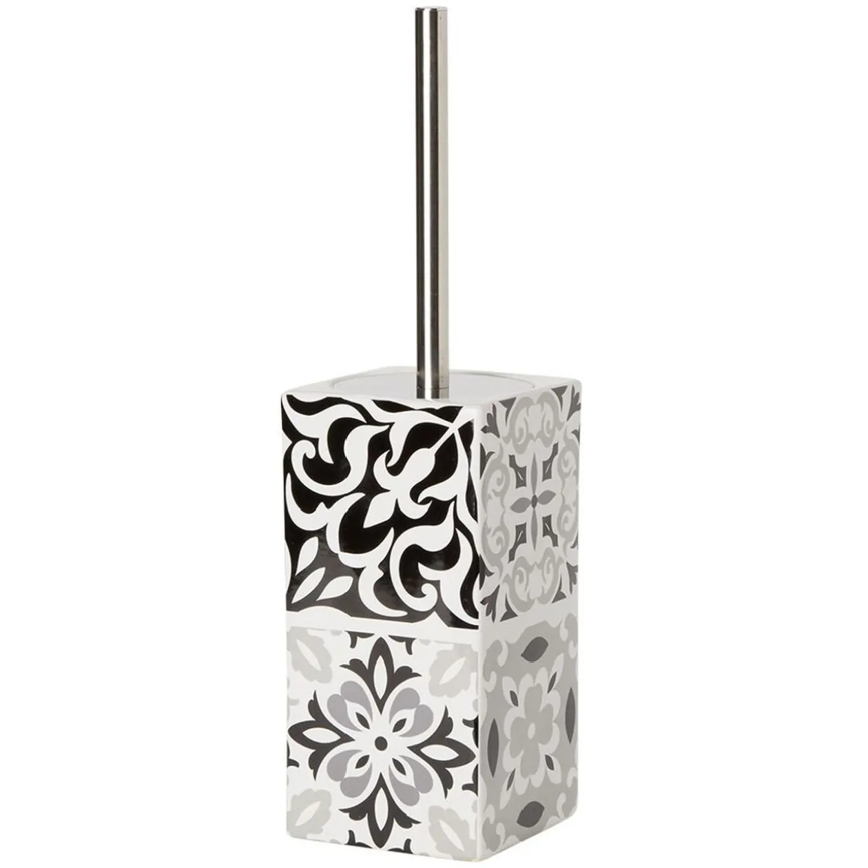 Brosse WC avec support en céramique design carreau de ciment noir et blanc.