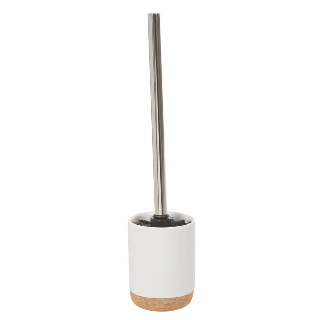 Brosse WC en céramique blanche avec socle en liège naturel.