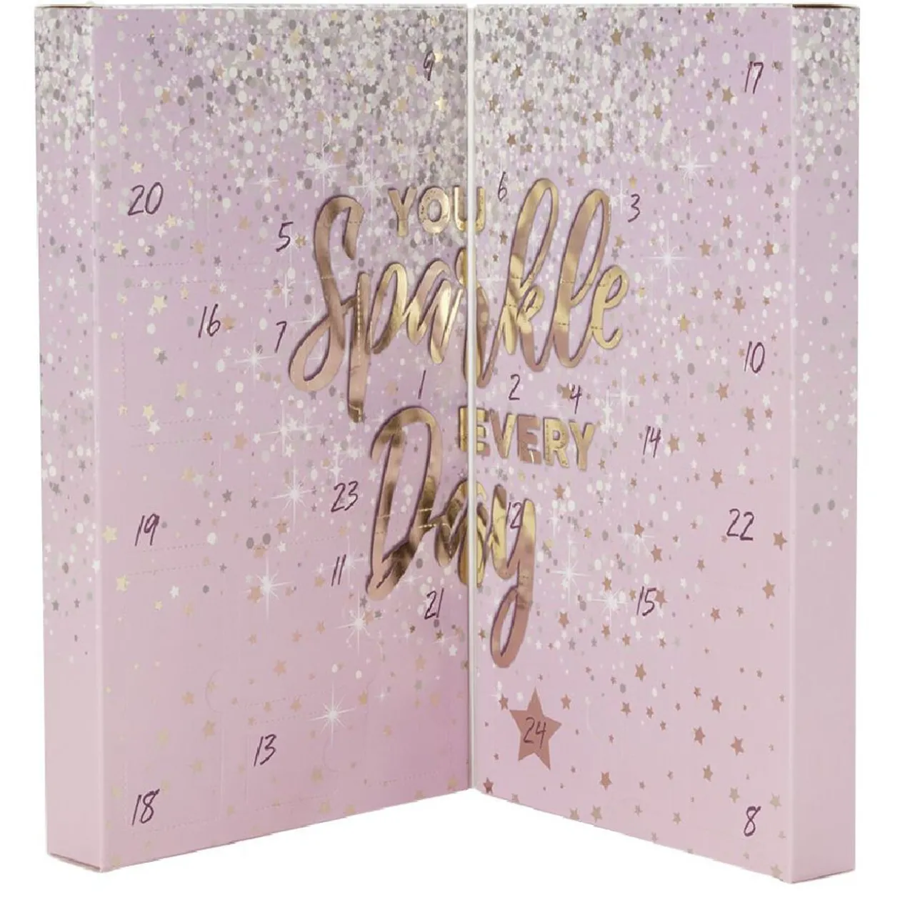 Calendrier de l’avent avec 24 surprises beauté à découvrir chaque jour jusqu’au réveillon de Noël.