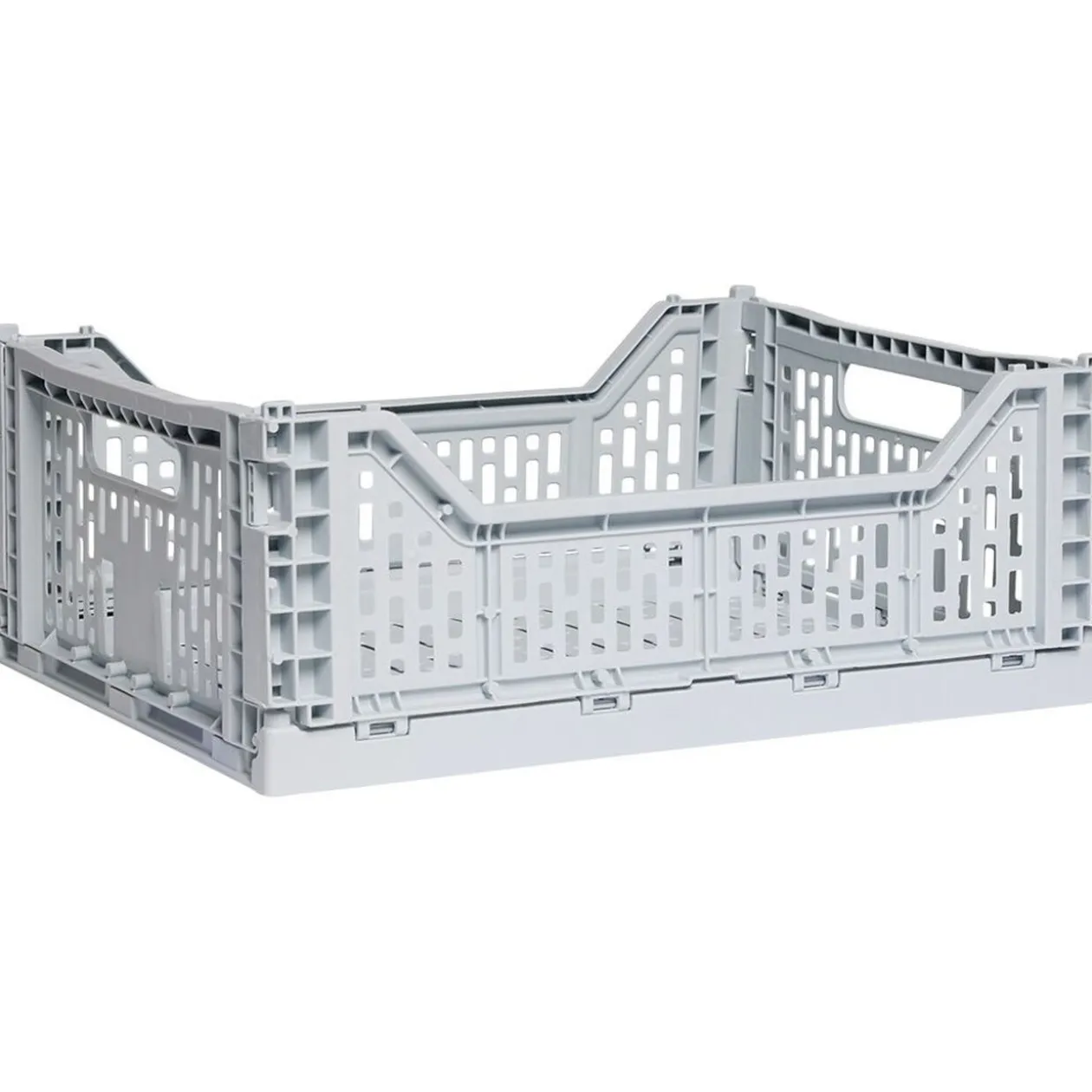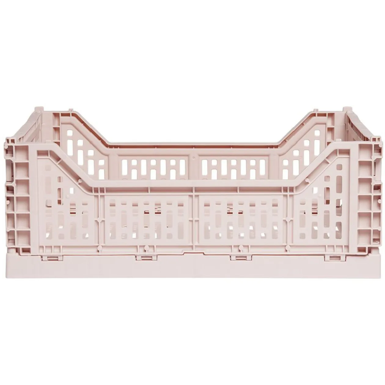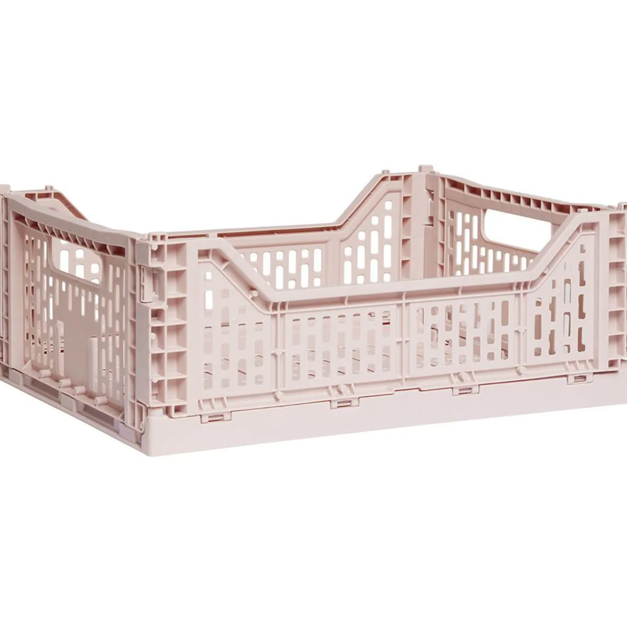 Casier pliant d’une contenance de 15 litres en plastique de couleur rose.