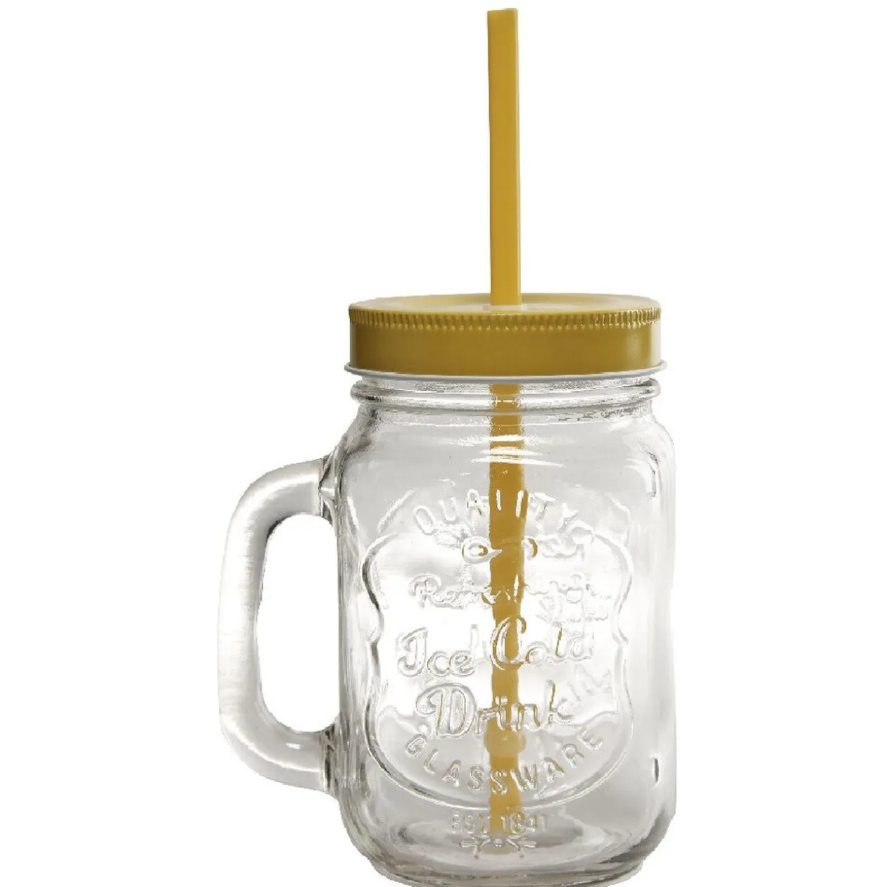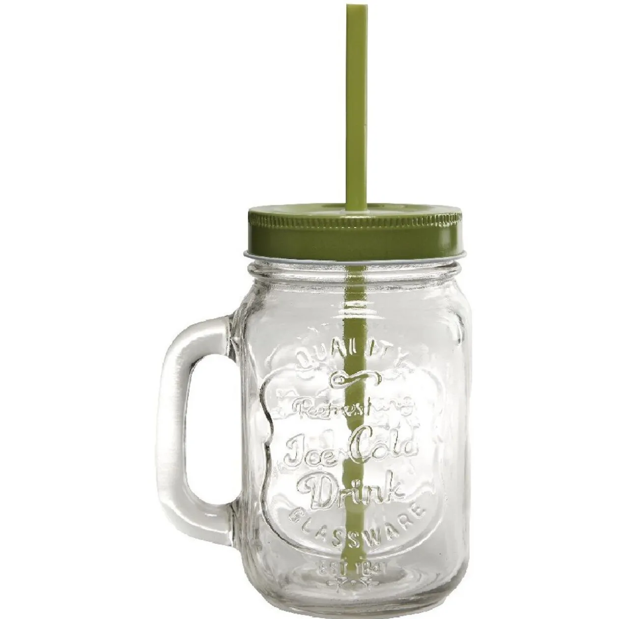 Recevez vos amis sans chichi avec ce lot de 6 chopes en verre ! Vous pouvez y verser de la bière, des cocktails voire même des boissons chaudes. Pratique et déco, la couleur du couvercle et de la paille permet à chacun de reconnaître son verre. Des inscriptions en relief apparaissent sur la partie en verre : quality, refresh, ice cold drink et lui donnent un côté vintage.