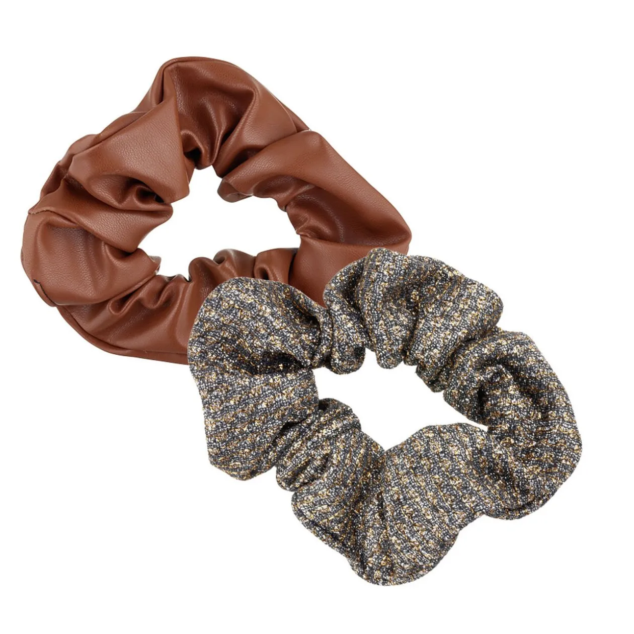 Lot de 2 chouchous en polyester de couleur marron et cuivre.