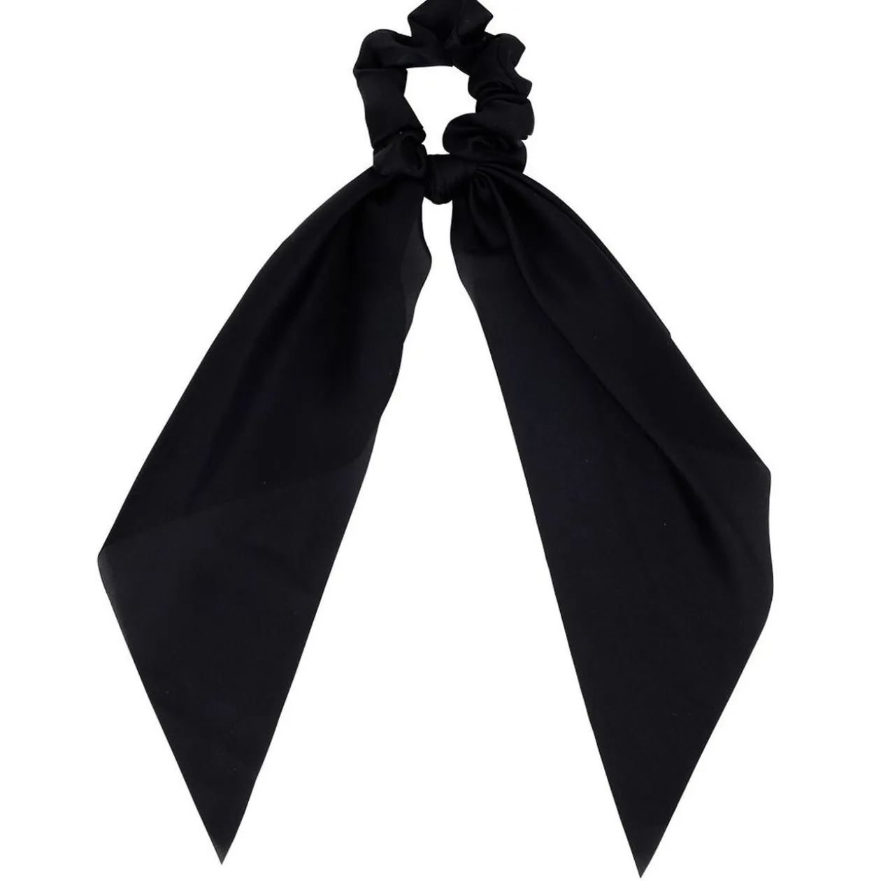 Chouchou à ruban long noir effet satiné, parfait pour apporter une touche chic à votre coiffure !