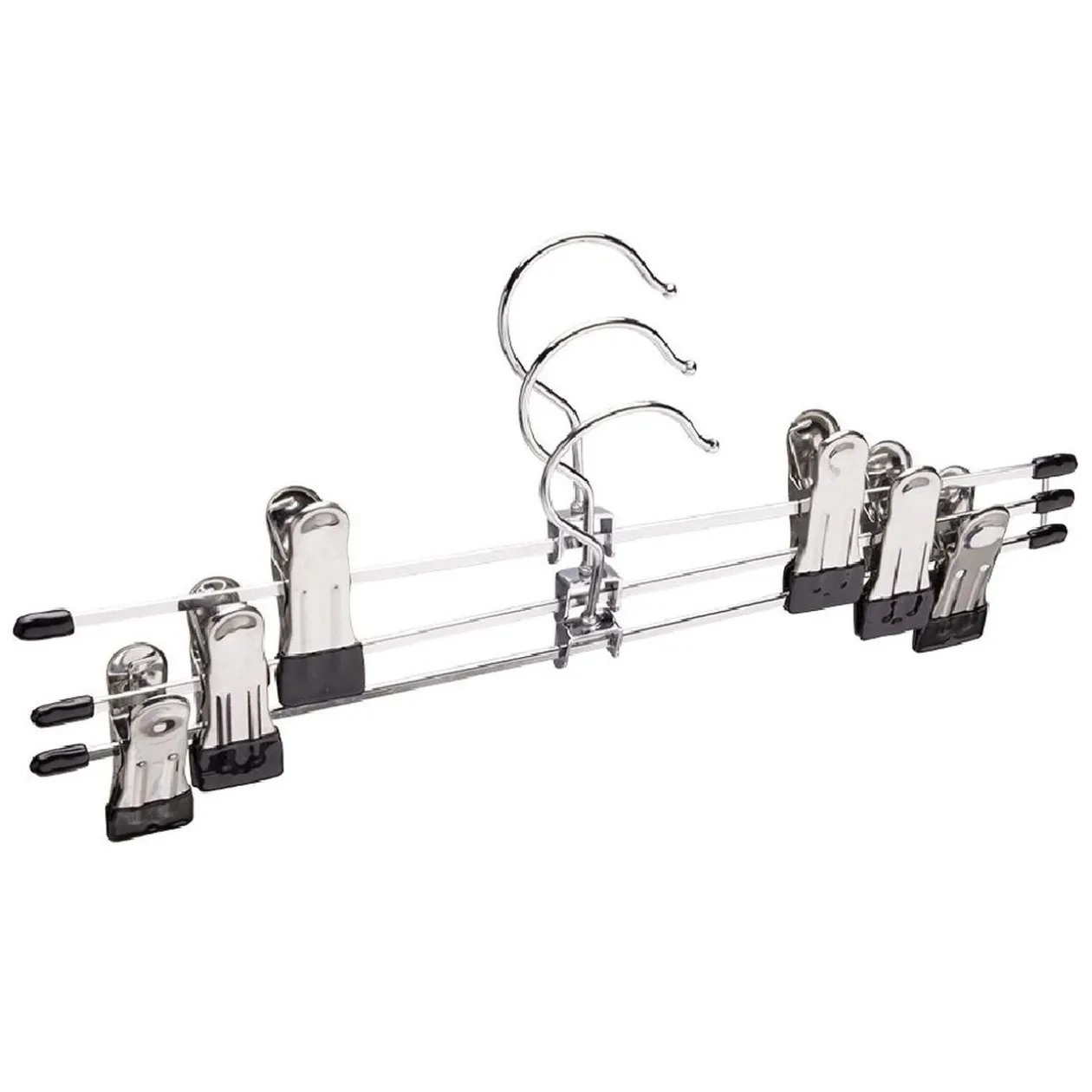Prenez soin de vos vêtements en les suspendant à l’aide de ce lot de 3 cintres à pinces en métal.