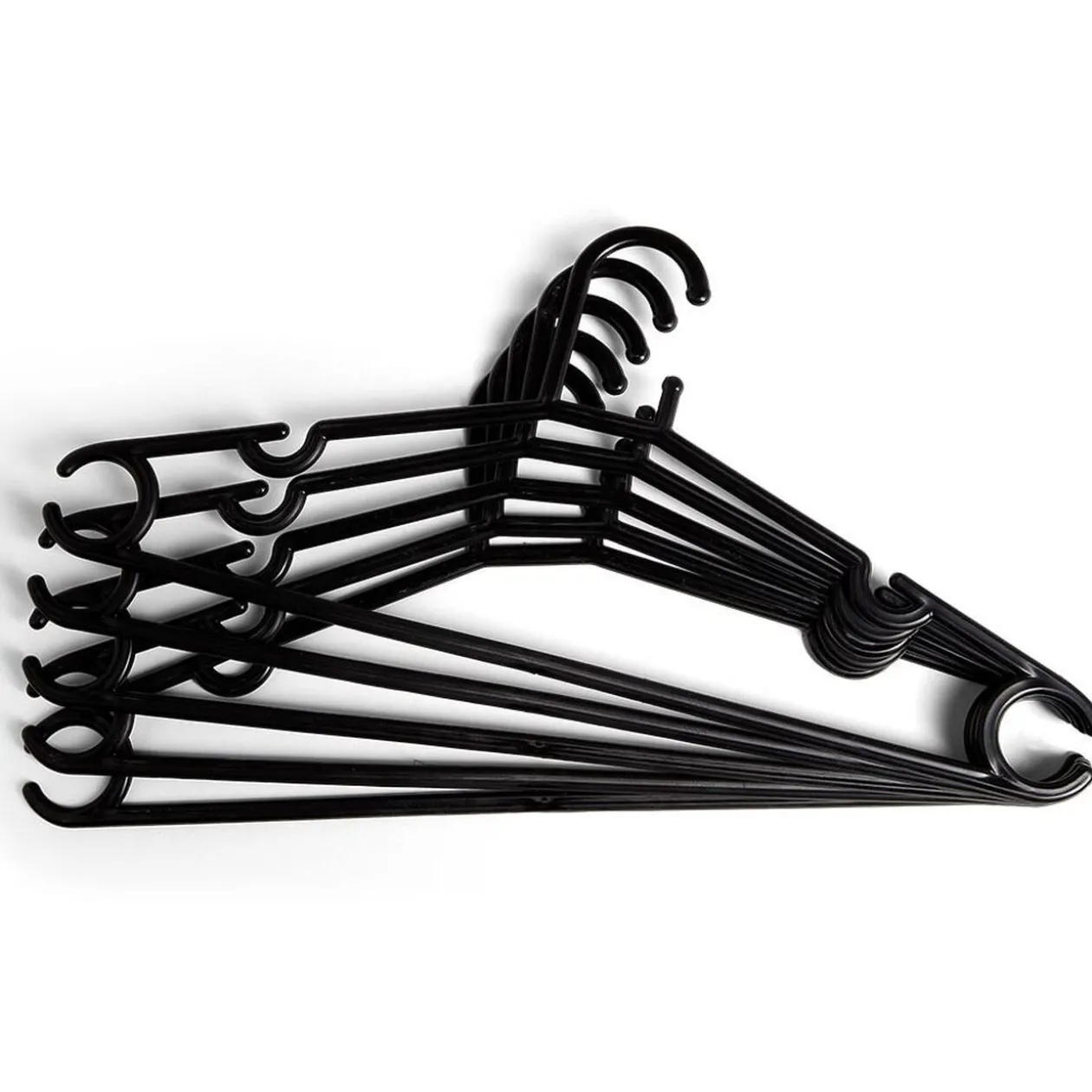 Ce lot de 5 cintres résistants en plastique noir avec encoches à bretelles et barre porte-ceinture est idéal pour disposer vos vêtements et accessoires.