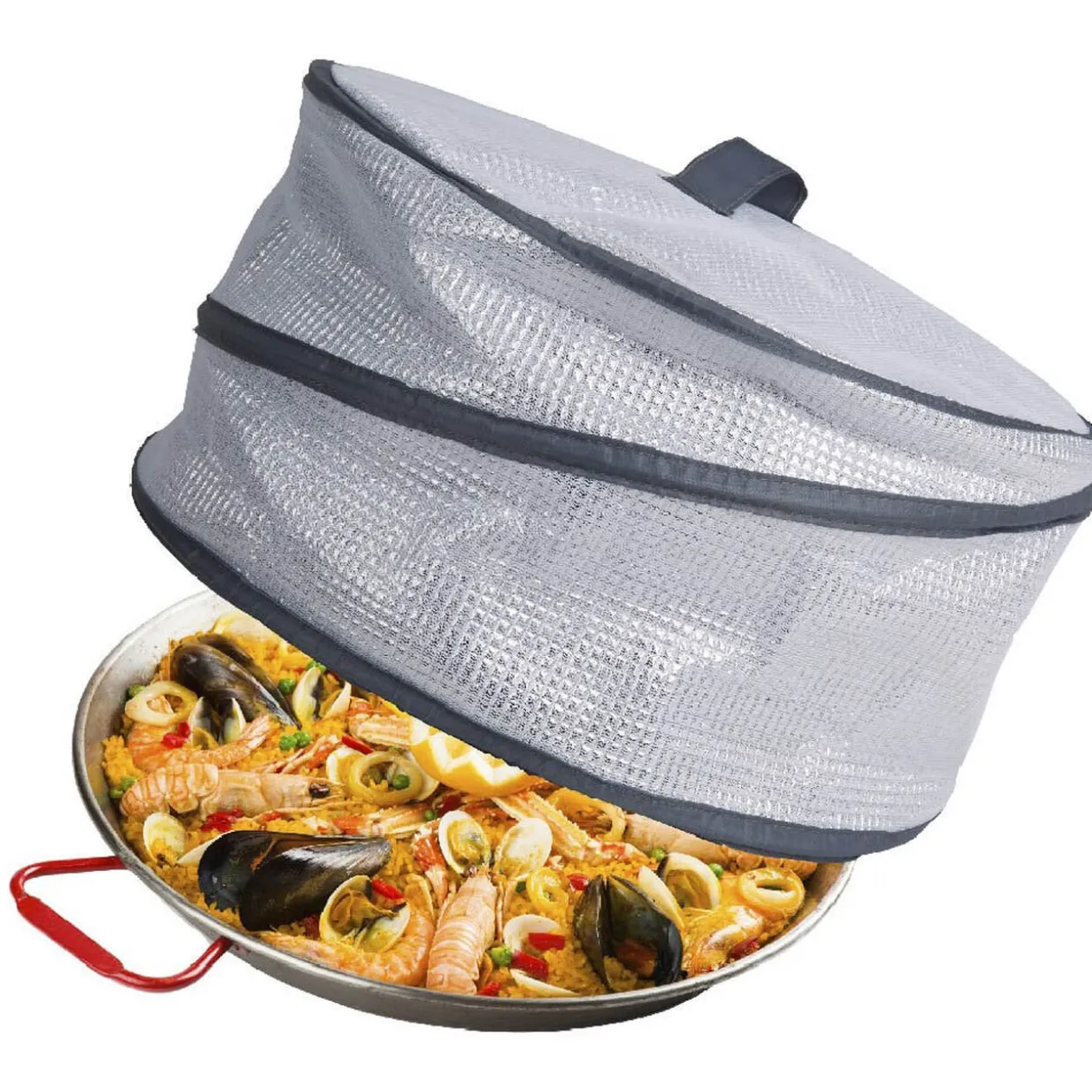 Cloche isotherme rétractable que vous pouvez utiliser pour maintenir la température d’un plat chaud ou froid. Ce couvre plat permet aussi de protéger vos préparations de la poussière ou des insectes.
