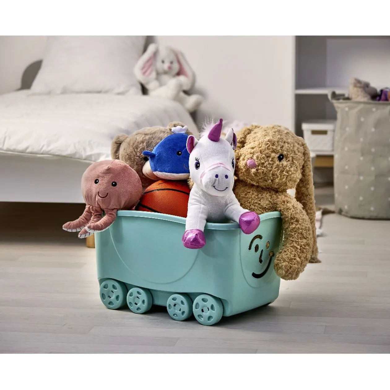 Pratique, ils pourront y ranger leurs jouets, mais aussi des livres, des vêtements ou des chaussures, le refermer grâce à son couvercle, et facilement le déplacer grâce aux 4 roulettes sur les deux côtés latéraux.