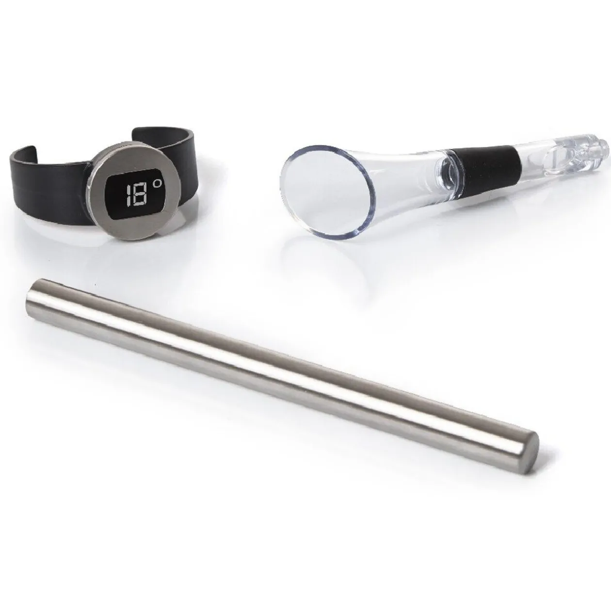 Coffret oenologie 3 pièces comprenant 1 rafraîchisseur, 1 bec verseur et 1 thermomètre, inox.