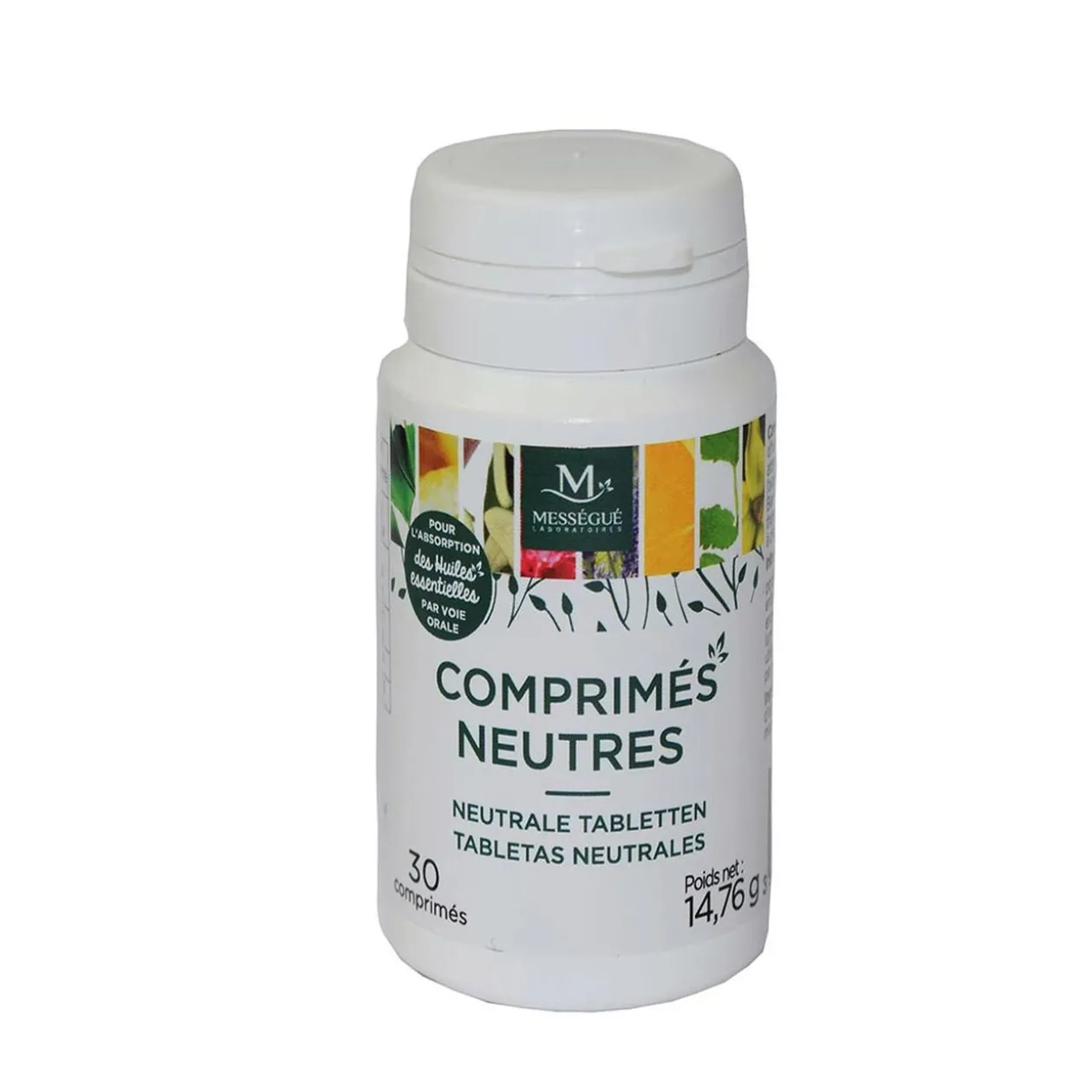 Les 30 comprimés neutres Mességué vous permettent de faciliter l’absorption d’huiles essentielles par voie orale et ainsi profiter de tous leurs bienfaits. Faîtes couler une goutte d’huile essentielle de votre choix sur le comprimé, une fois que celle-ci est absorbé, avalez le comprimé avec un grand verre d’eau. La consultation d’un thérapeute reste indispensable à l’utilisation de ce produit afin de connaître les quantités appropriées.
