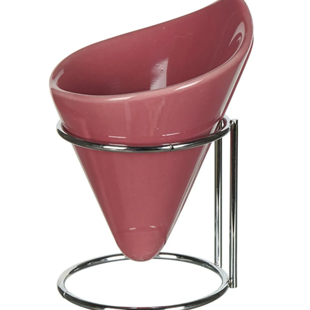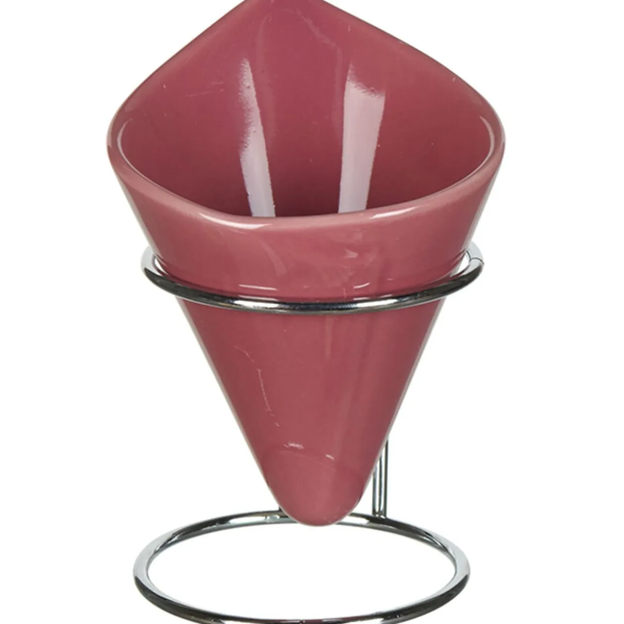 Le cornet apéritif en céramique est une manière originale de présenter votre repas. Dimensions : 11x9x11 cm. Vendu avec son support métallique.