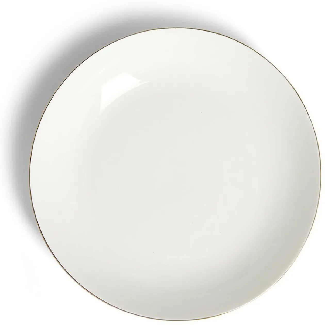 Pour présenter vos aliments joliment sur votre table de fête, cette coupelle blanche avec bordure dorée est idéale.