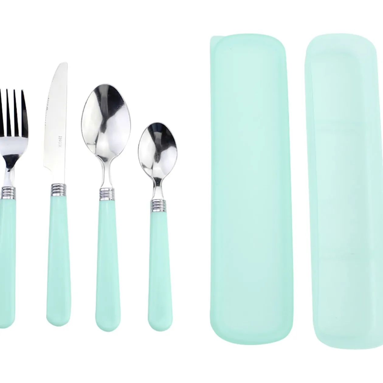 Sa boîte colorée vous permet de transporter de façon hygiénique votre fourchette, couteau, cuillère à soupe et cuillère à café. Après utilisation, les couverts sales peuvent être remis dans leur boîte pour vous permettre de les ramener et les laver à la maison, sans salir vos affaires sur le retour.