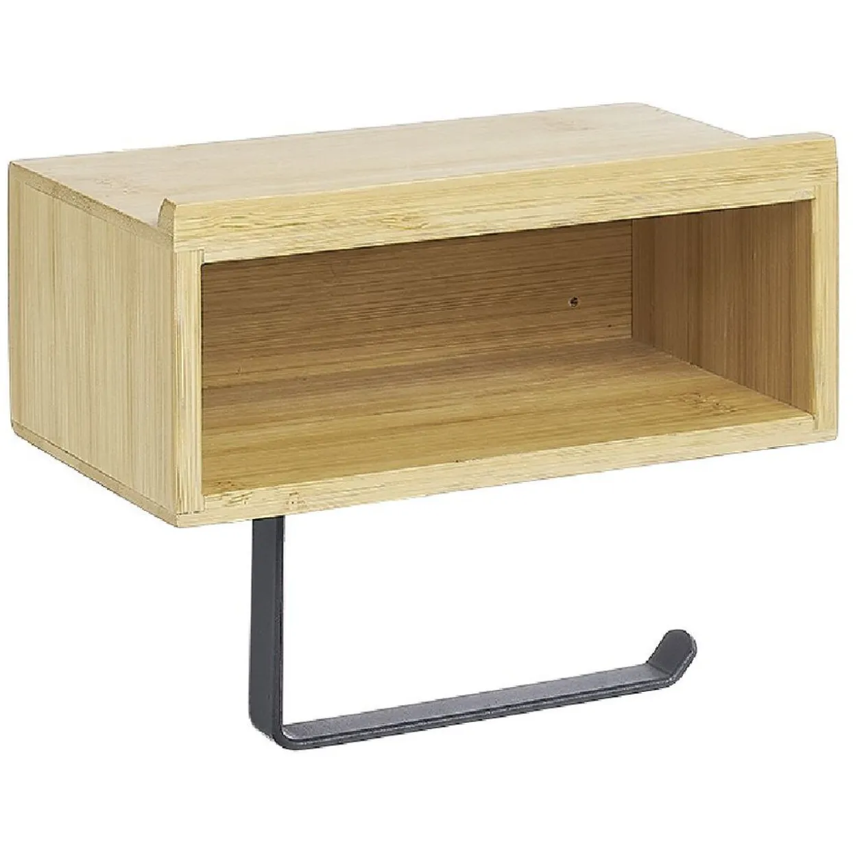 Dérouleur à papier toilette avec support pour téléphone en bambou.