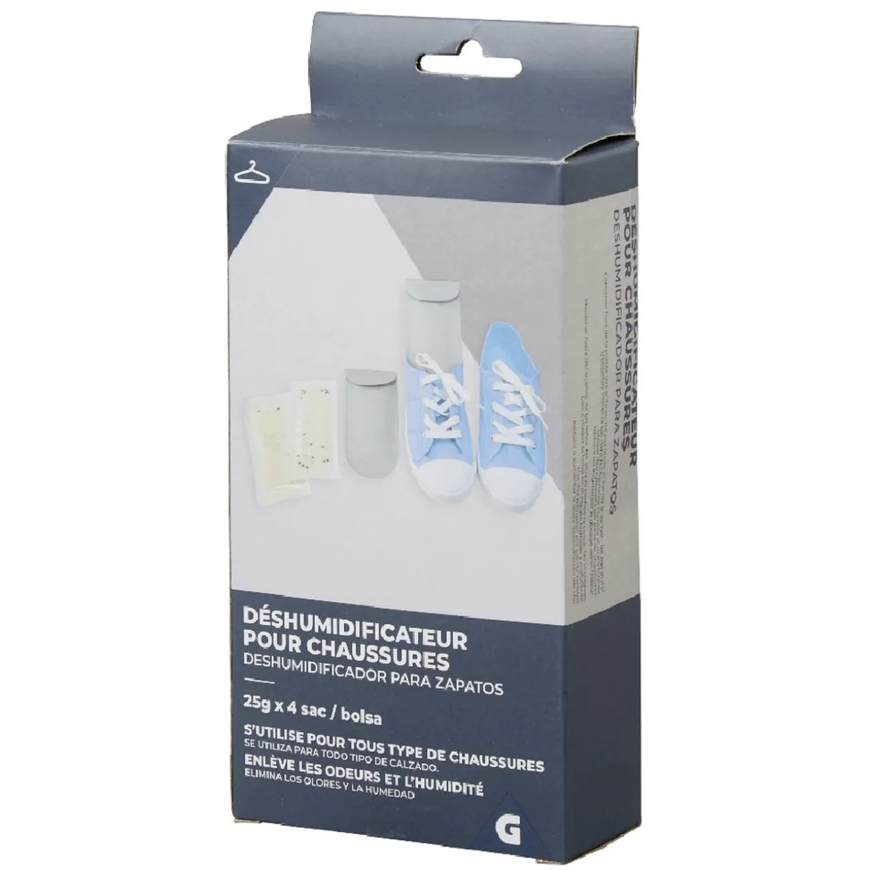 Déshumidifiez vos chaussures tout en retirant les mauvaises odeurs avec ce kit déshumidificateur contenant 4 sachets de 25 g avec 2 pochettes.